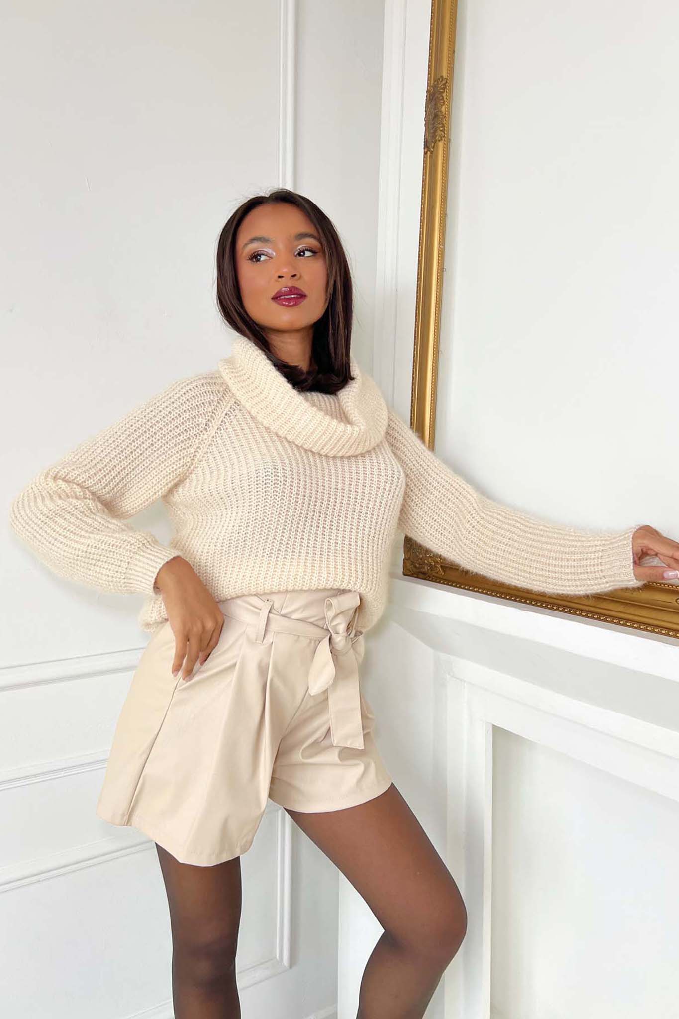 Aaronπουλόβερ με φαρδύ ζιβάγκο πλεκτό μπεζ