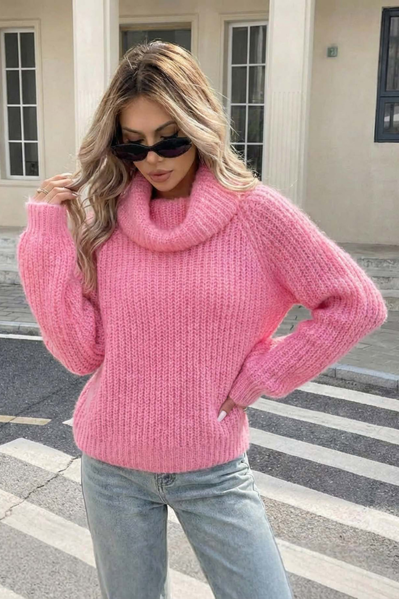 Aaronπουλόβερ με φαρδύ ζιβάγκο πλεκτό ροζ
