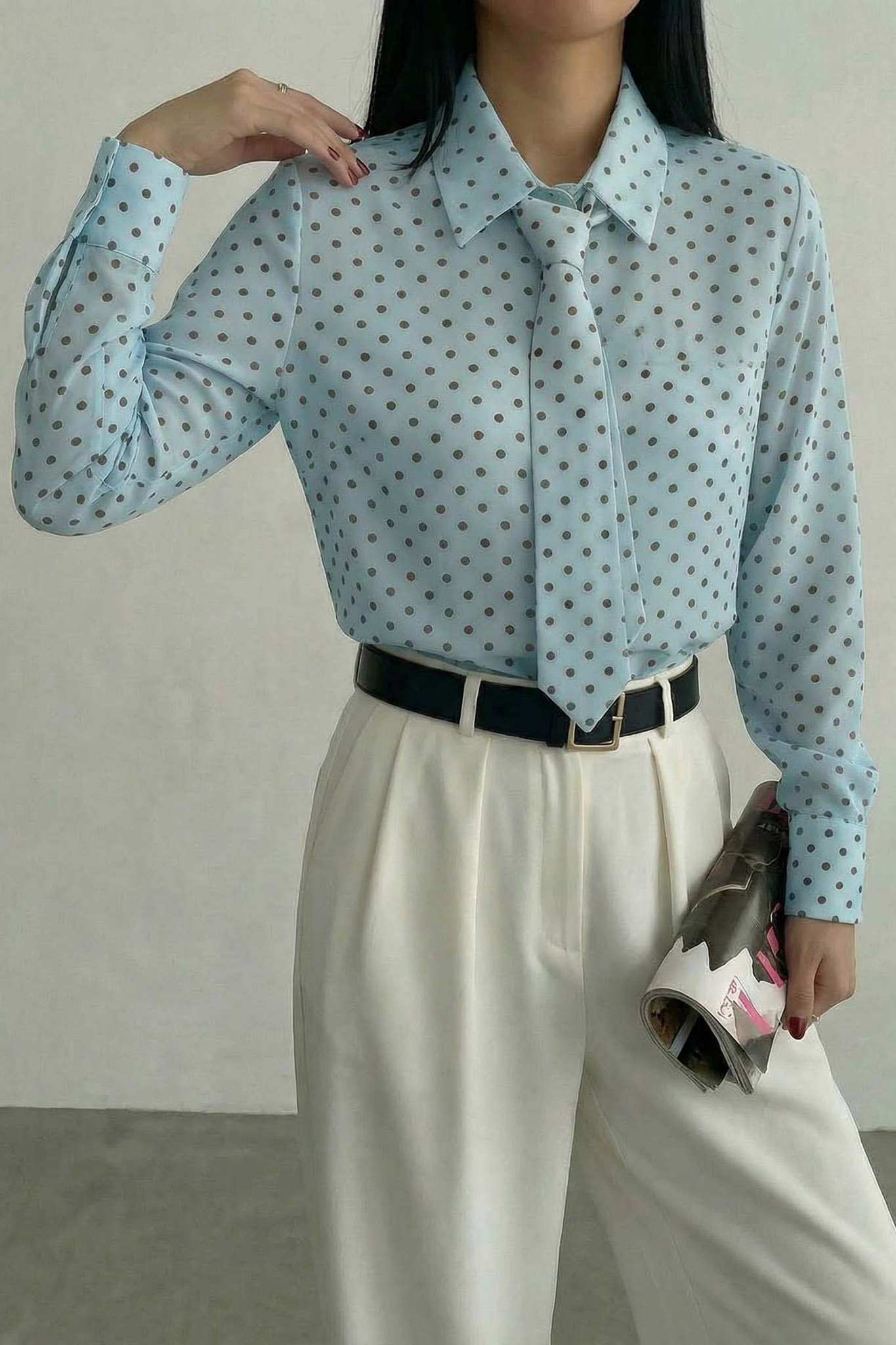 Πουκάμισοπουά, το οποίο ξεχωρίζει για τον ενσωματωμένο του σχεδιασμό που περιλαμβάνει μια ασορτί γραβάτα από το ίδιο ύφασμα.