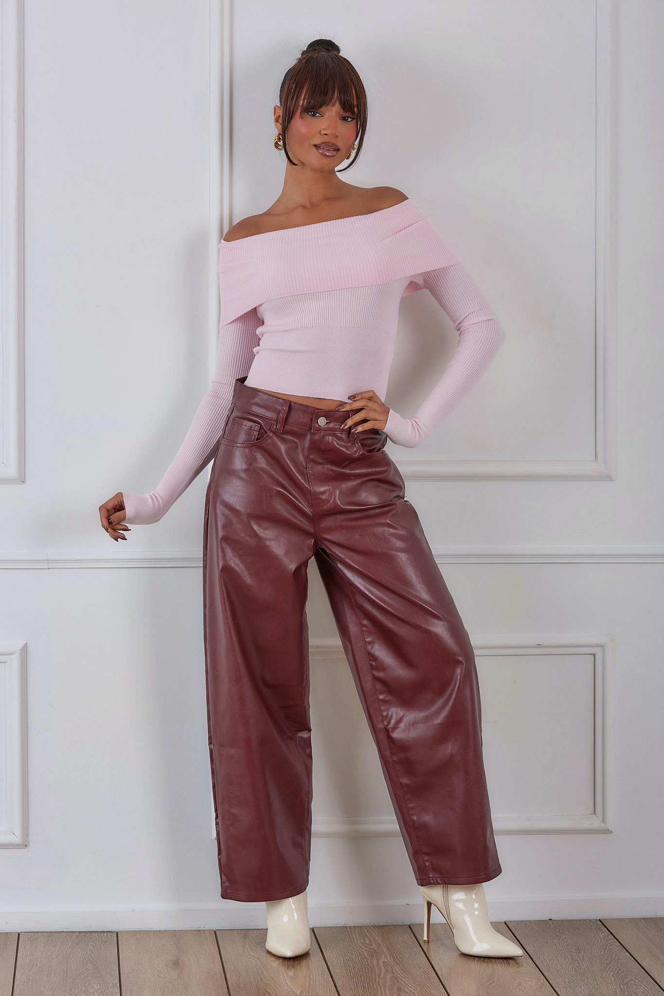 Παντελόνι δερματίνη με ψηλή μέση και κλασική γραμμή, προσφέρει άνετη εφαρμογή και μοντέρνα εμφάνιση, ιδανική για καθημερινές αλλά και βραδινές εμφανίσεις. Διαθέτει μπροστινές και πίσω τσέπες, κλείσιμο με φερμουάρ και κουμπί, ενώ το μαλακό υλικό του χαρίζει ευχάριστη αίσθηση και ανθεκτικότητα. Συνδυάστε το εύκολα με πουκάμισα, μπλούζες ή πλεκτά για ένα ολοκληρωμένο look. Μήκος 98cm, μέση 35cm.