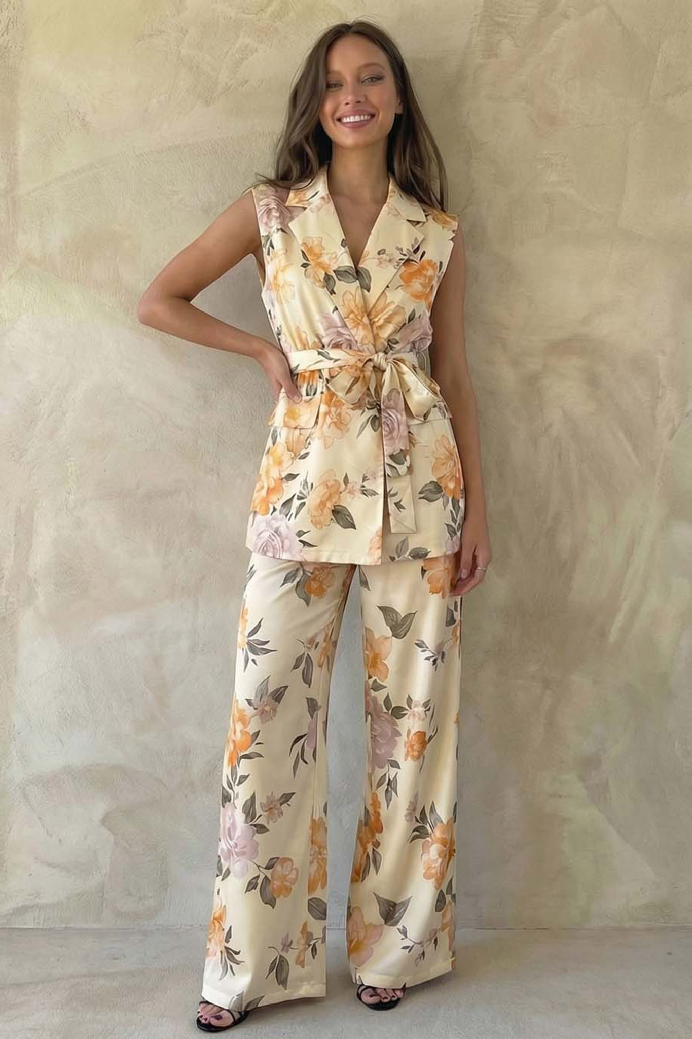 Adelaidaσετ γιλέκο παντελόνι φλοράλ κίτρινο