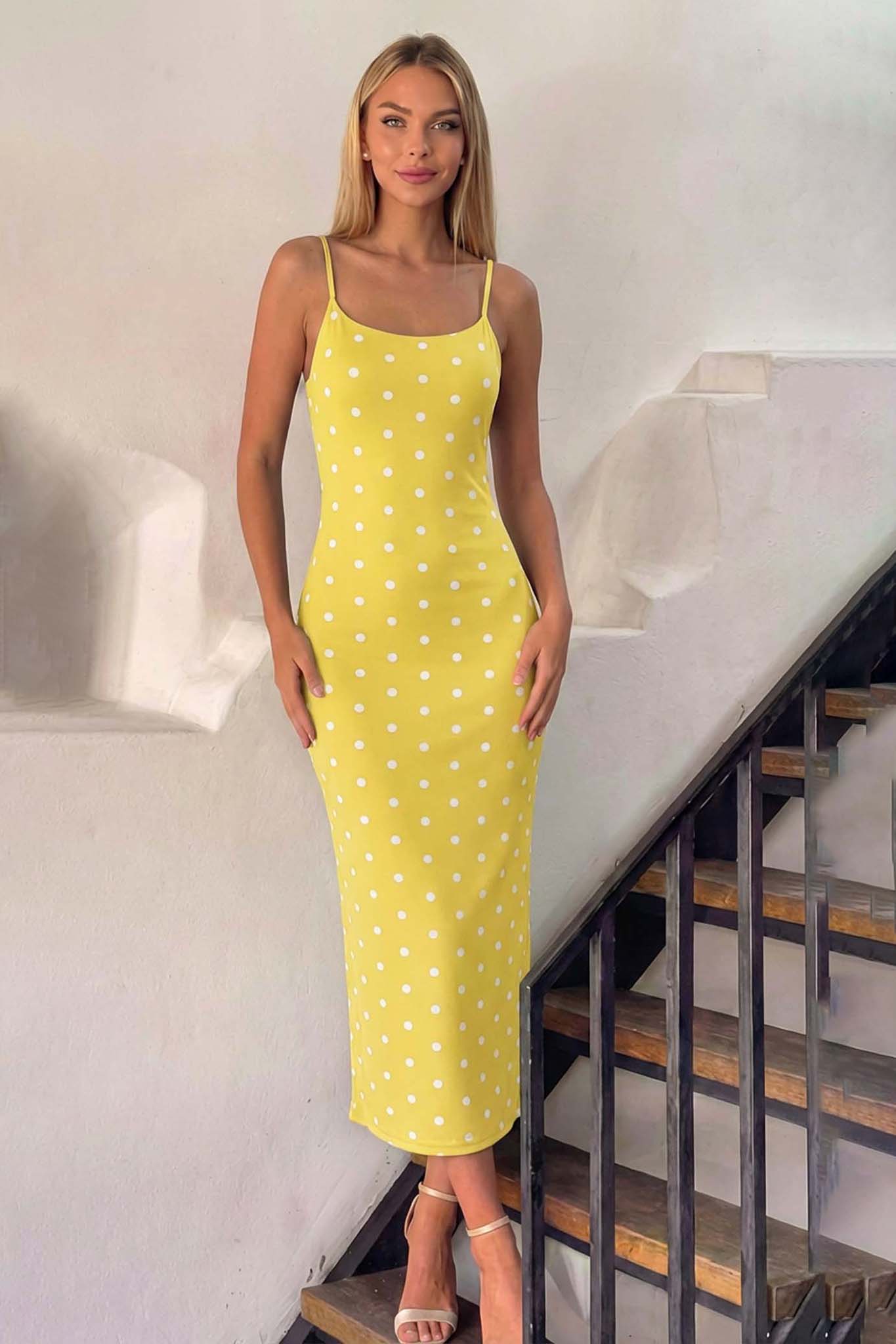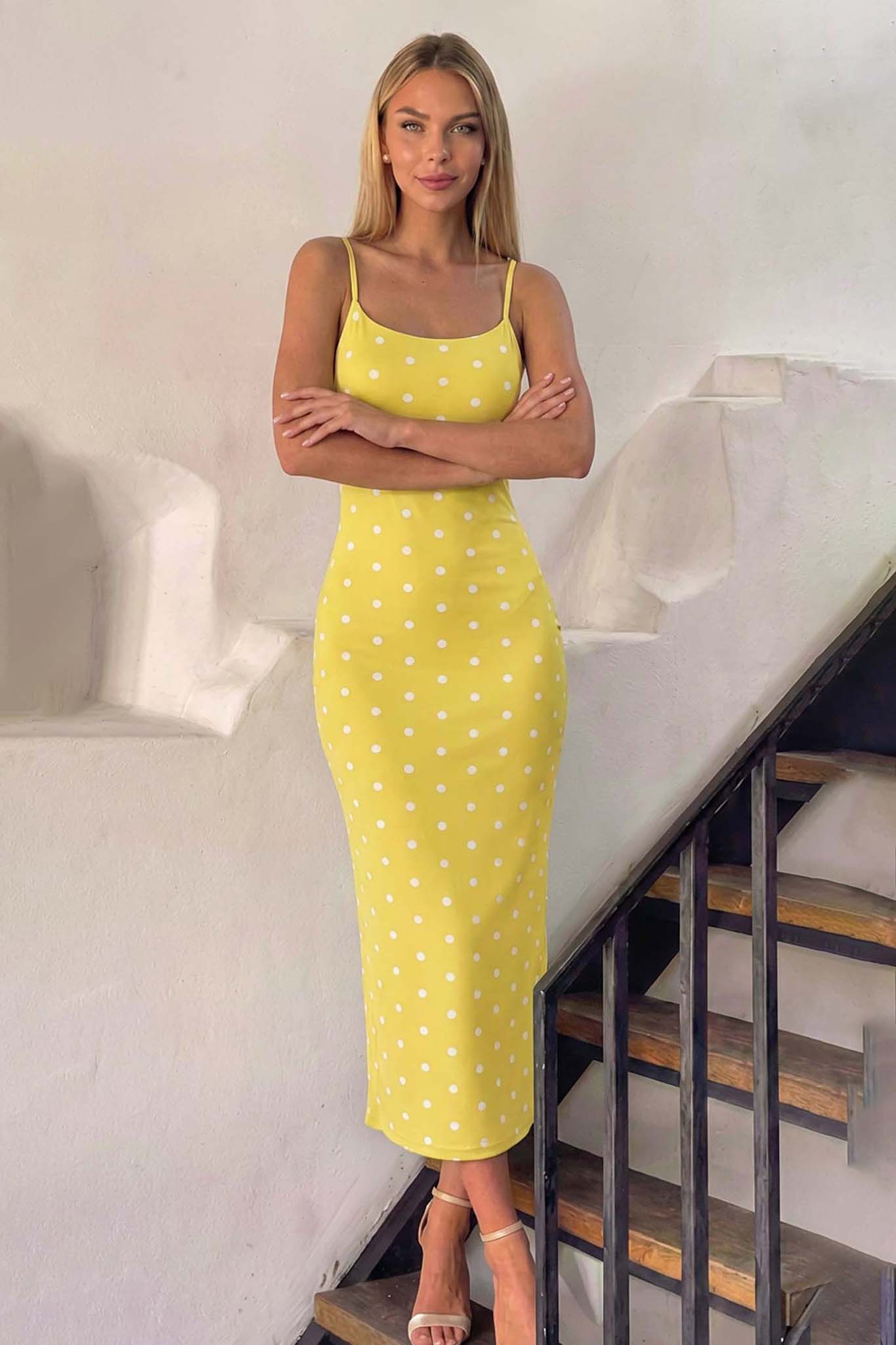 Adellaμίντι πουά φόρεμα κίτρινο