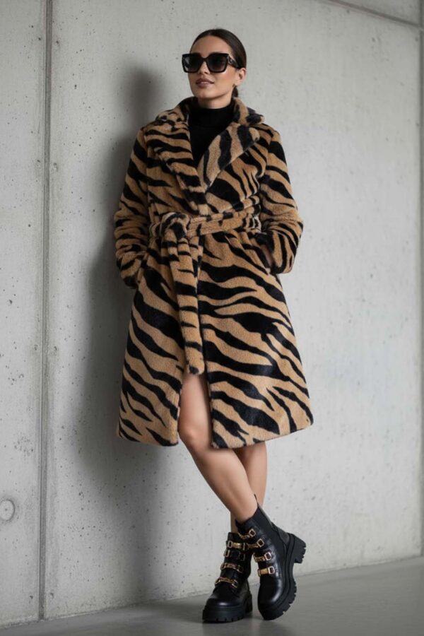 Μπουφάν μονόχρωμο, κλασσικό με γιακά και δέσιμο στην μέση.