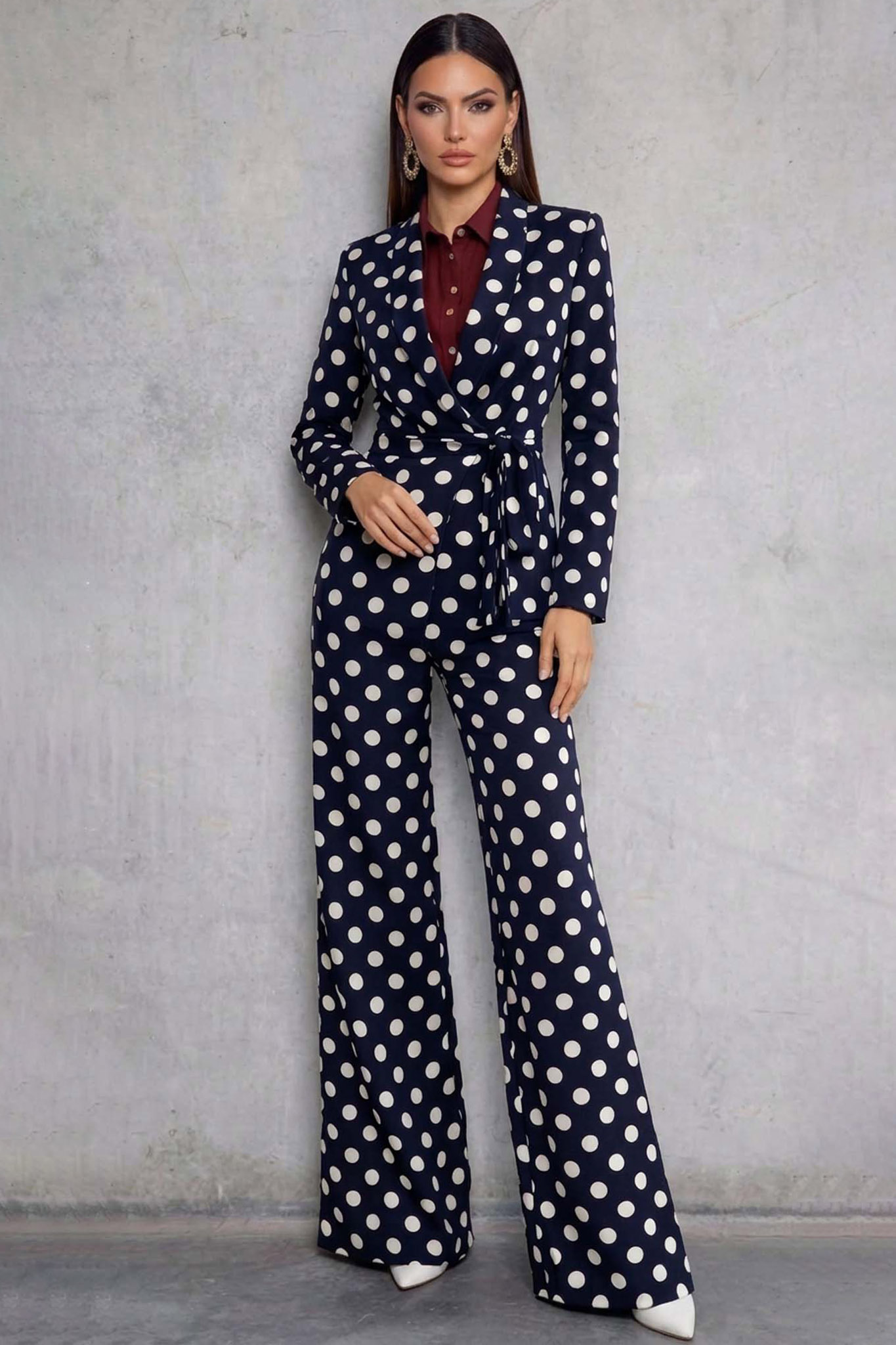 Agnethaσετ σακάκι παντελόνι πουά μπλε σκούρο