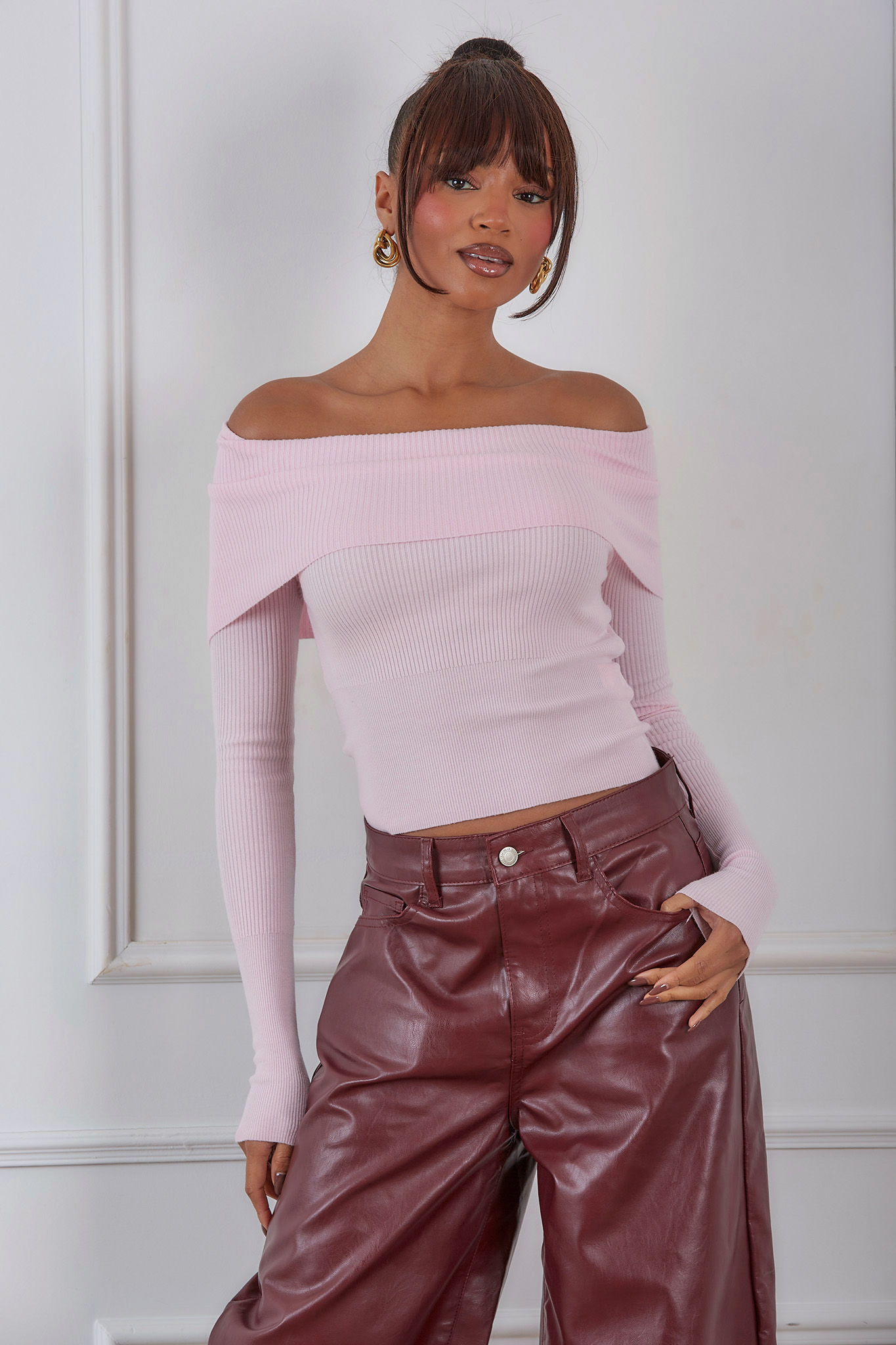 Aidenμπλούζα ριπ με ελεύθερους ώμους ροζ