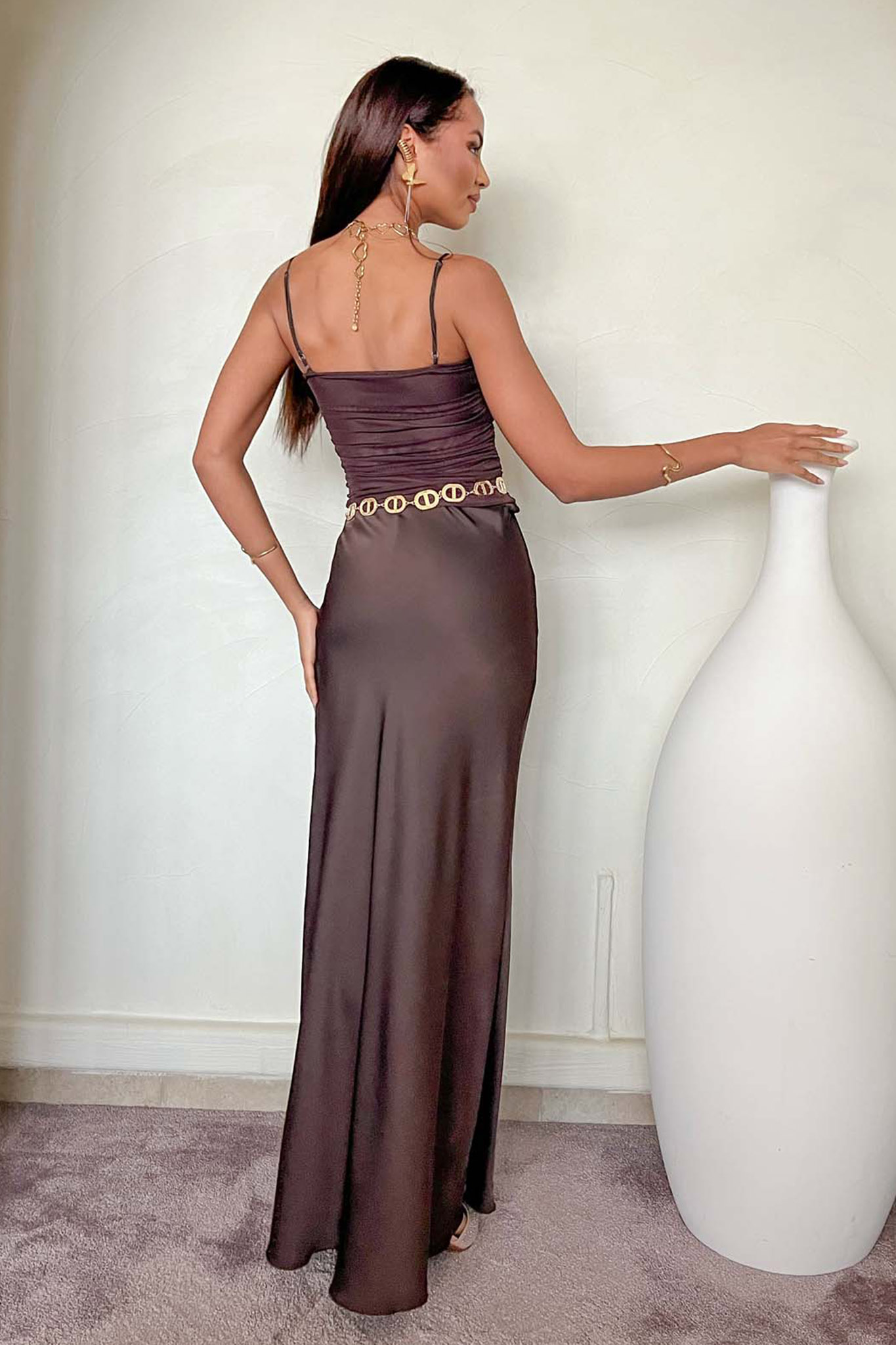 Σατέν Τοπ με ντραπέ λεπτομέρειες. Μήκος 35cm, στήθος 80cm