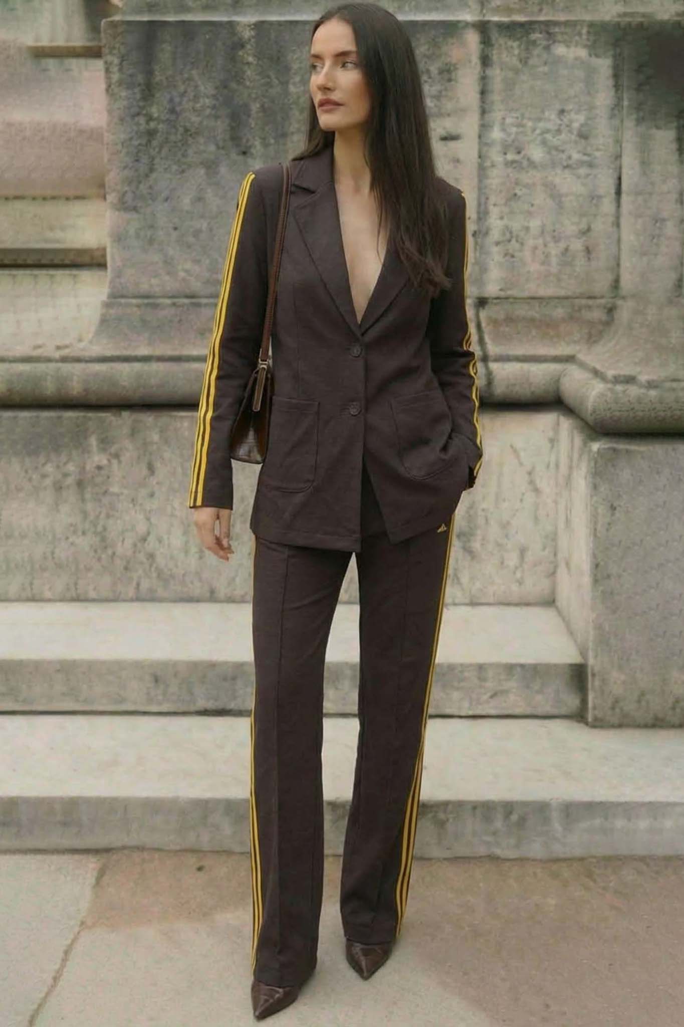 Σετ σακάκι με παντελόνι σε ισια γραμμή ,με ρίγα λεπτομέρειες στο πλαι.
