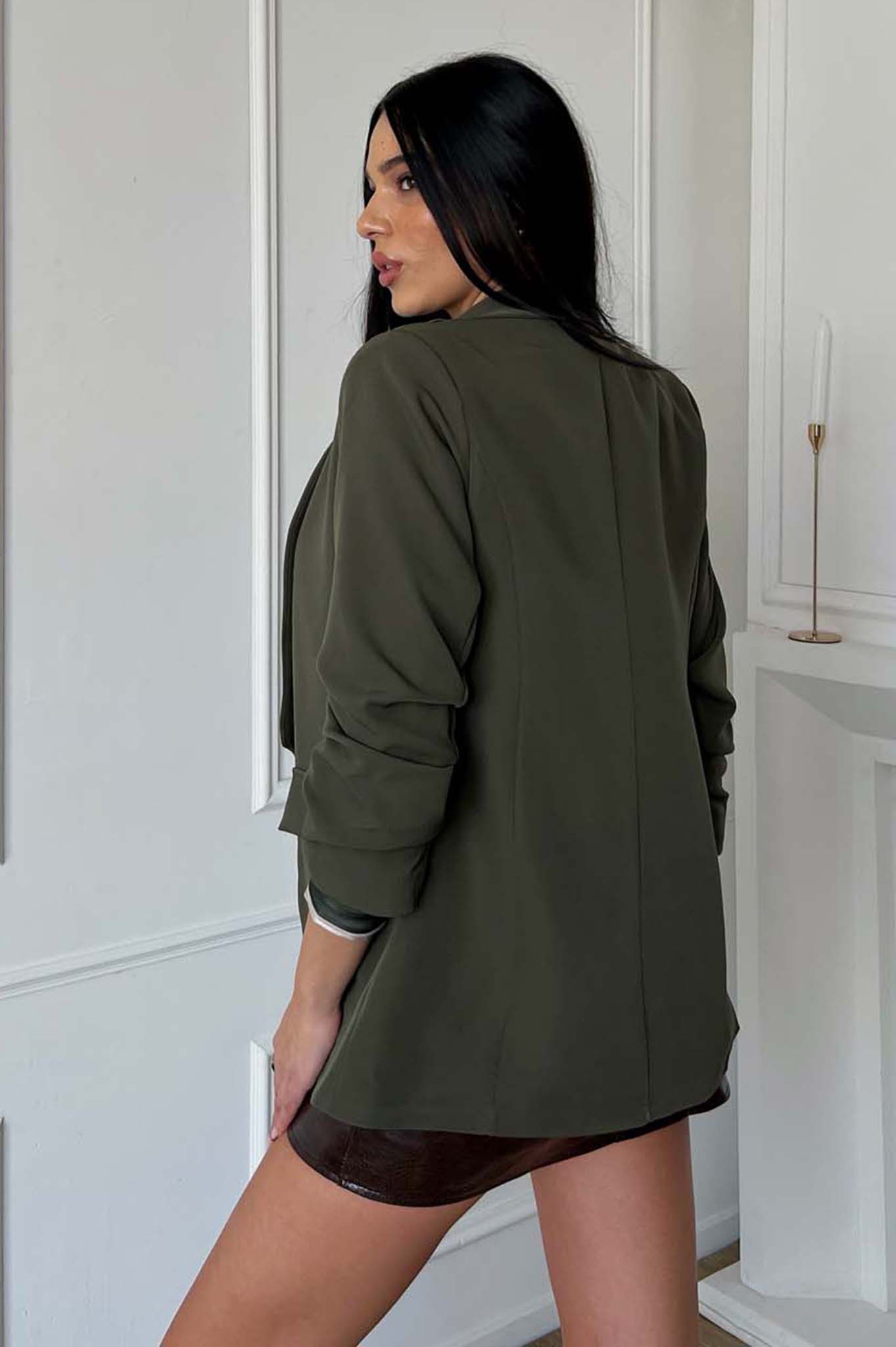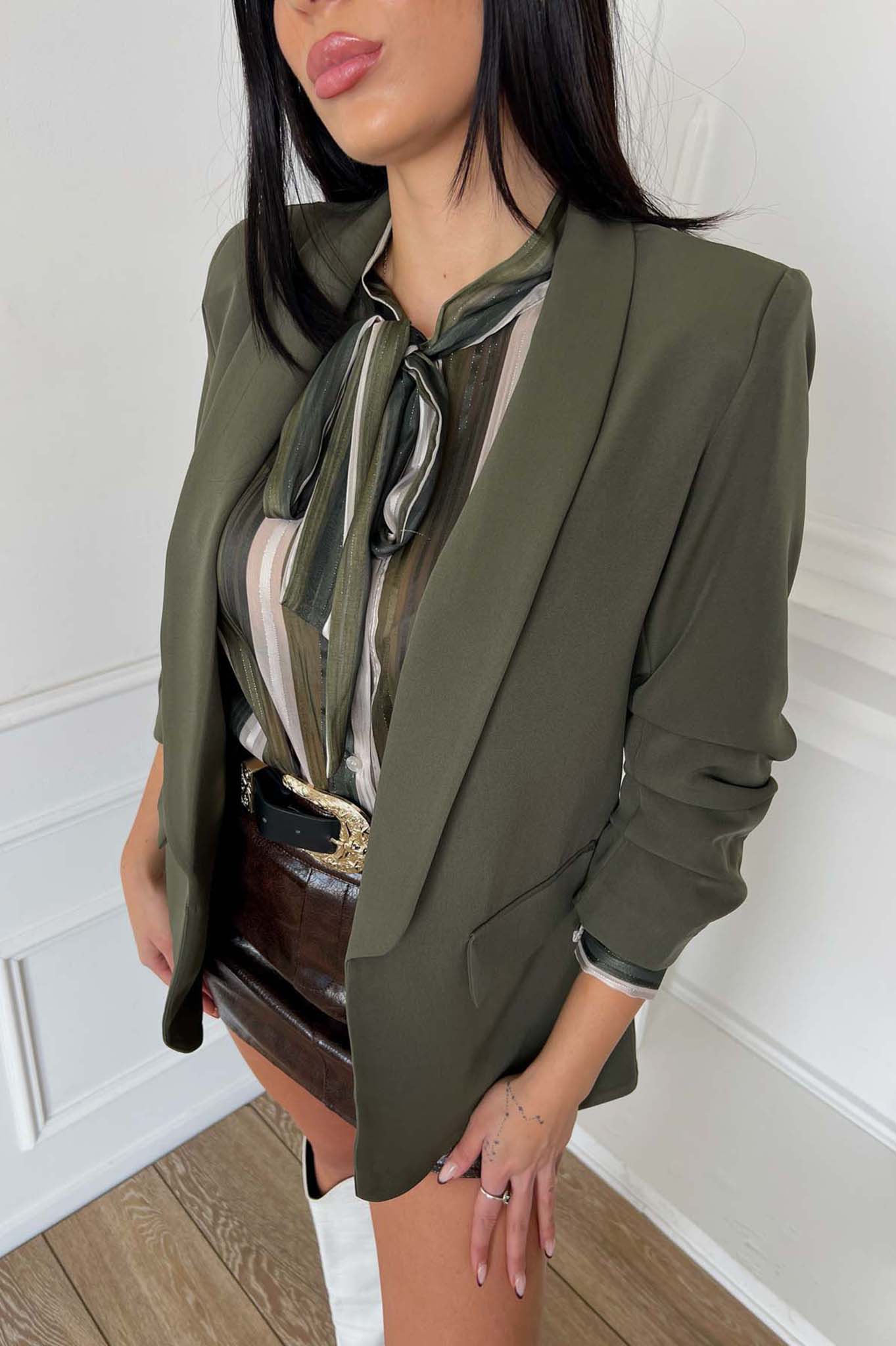 Σακάκι με πέτο και σούρα στα μανίκια. Μήκος 73cm στήθος 56cm