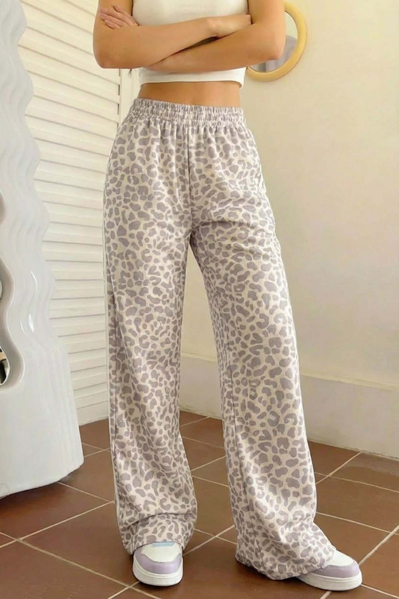 Φόρμα με λάστιχο στη μέσση, ρίγες και σχέδιο animal print για στυλάτες εμφανίσεις. Mήκος 108cm, μέση 66cm,