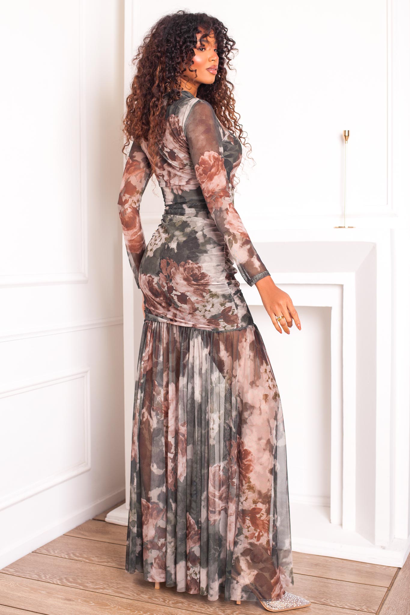 Μάξι φόρεμα με διαφάνεια στα μανίκια. Μήκος 155cm, στήθος 80cm, μανίκι 60cm.