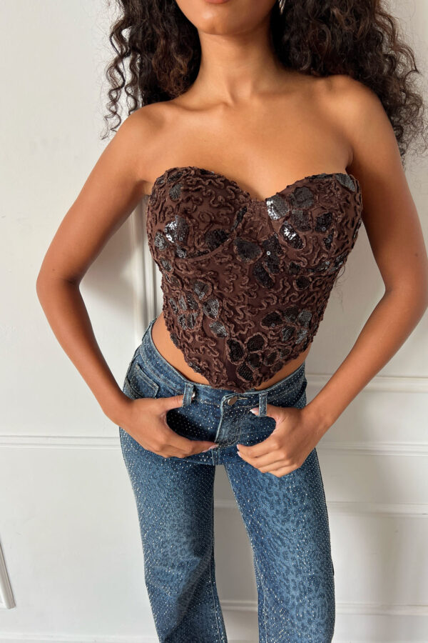 Amyμπλούζα πλεκτή ζιβάγκο με πέτρες καφέ