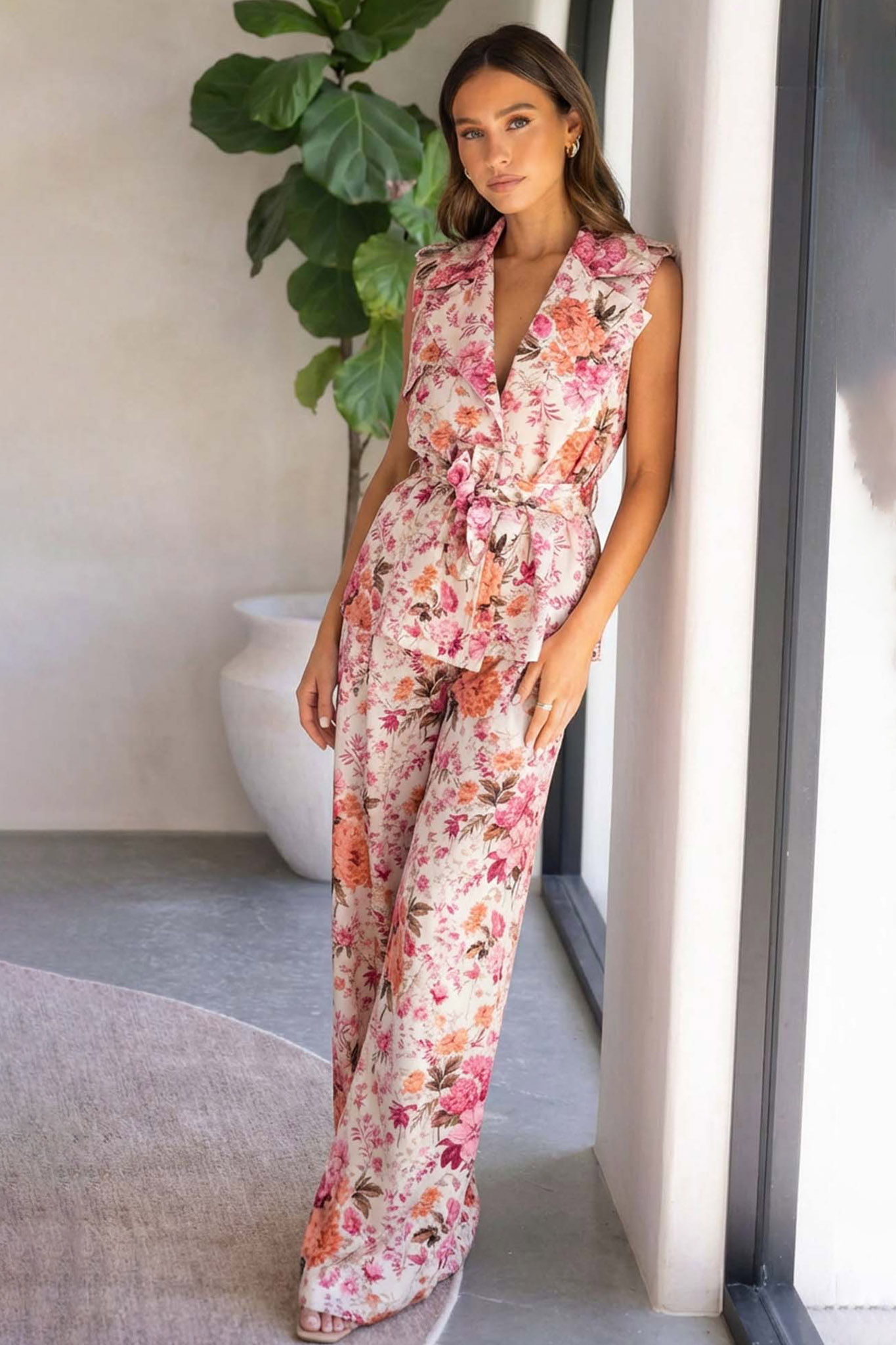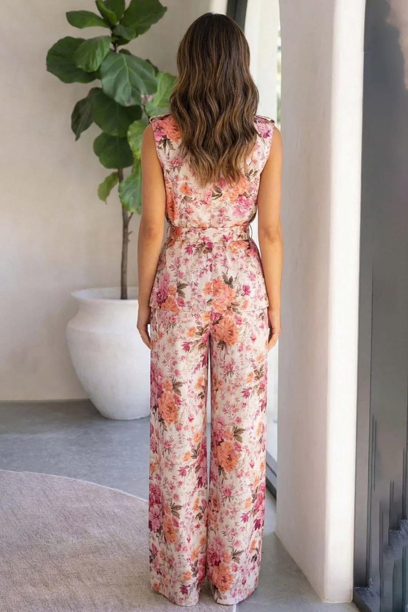 Arielleσετ γιλέκο παντελόνι φλοράλ σομόν
