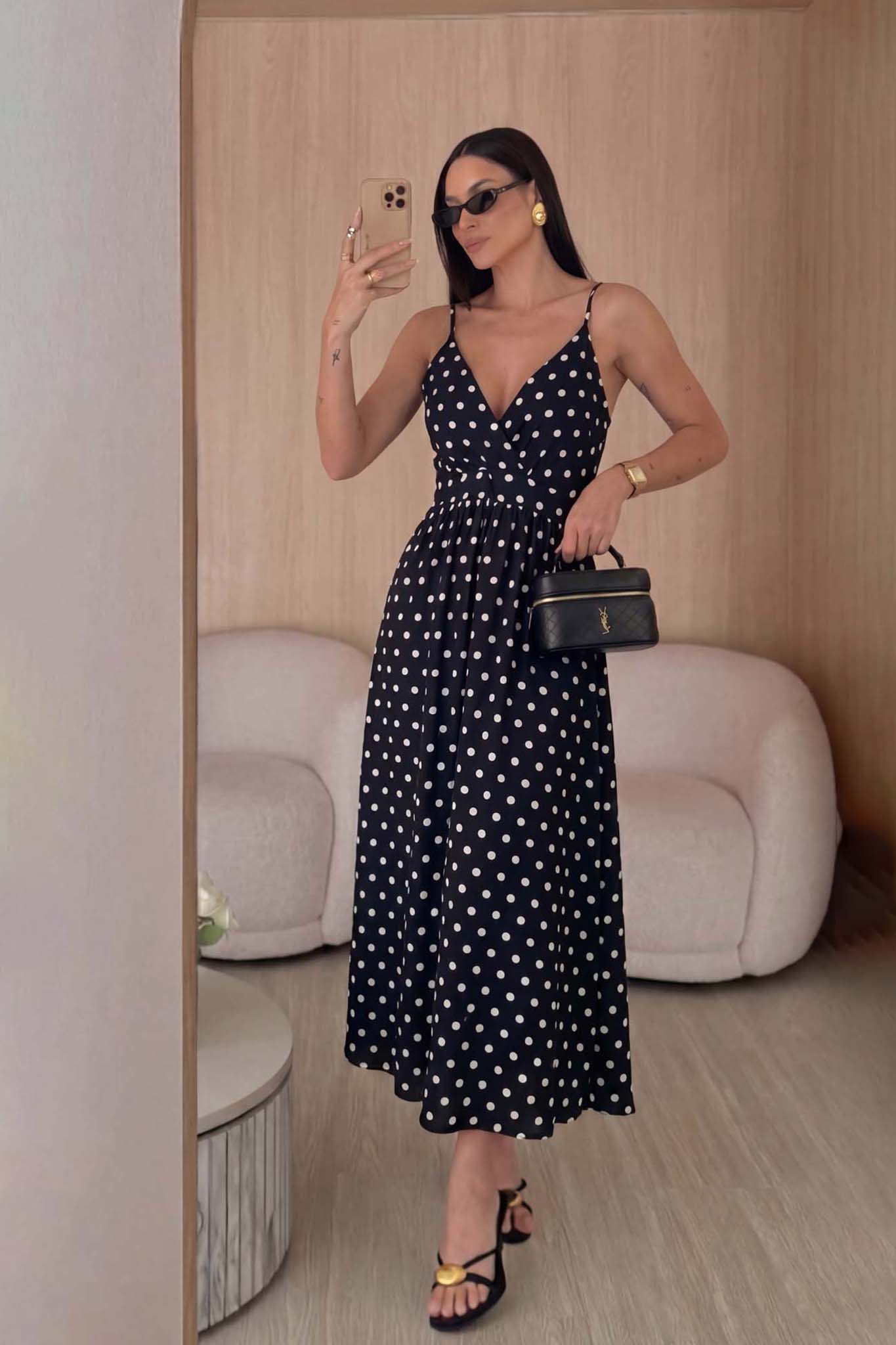 Aristaμίντι πουά φόρεμα με λεπτές τιράντες μαύρο