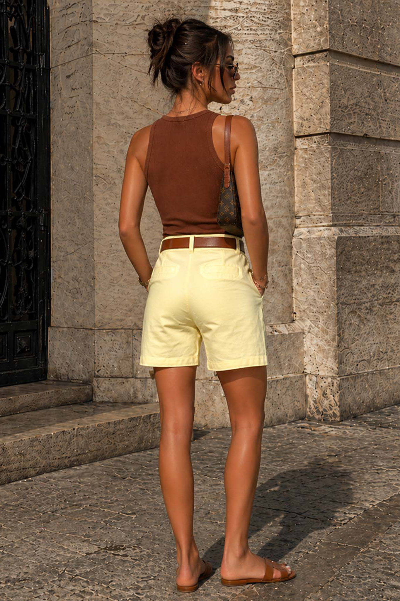 Armoniaυφασμάτινη βερμούδα με ζωνάκι κίτρινο