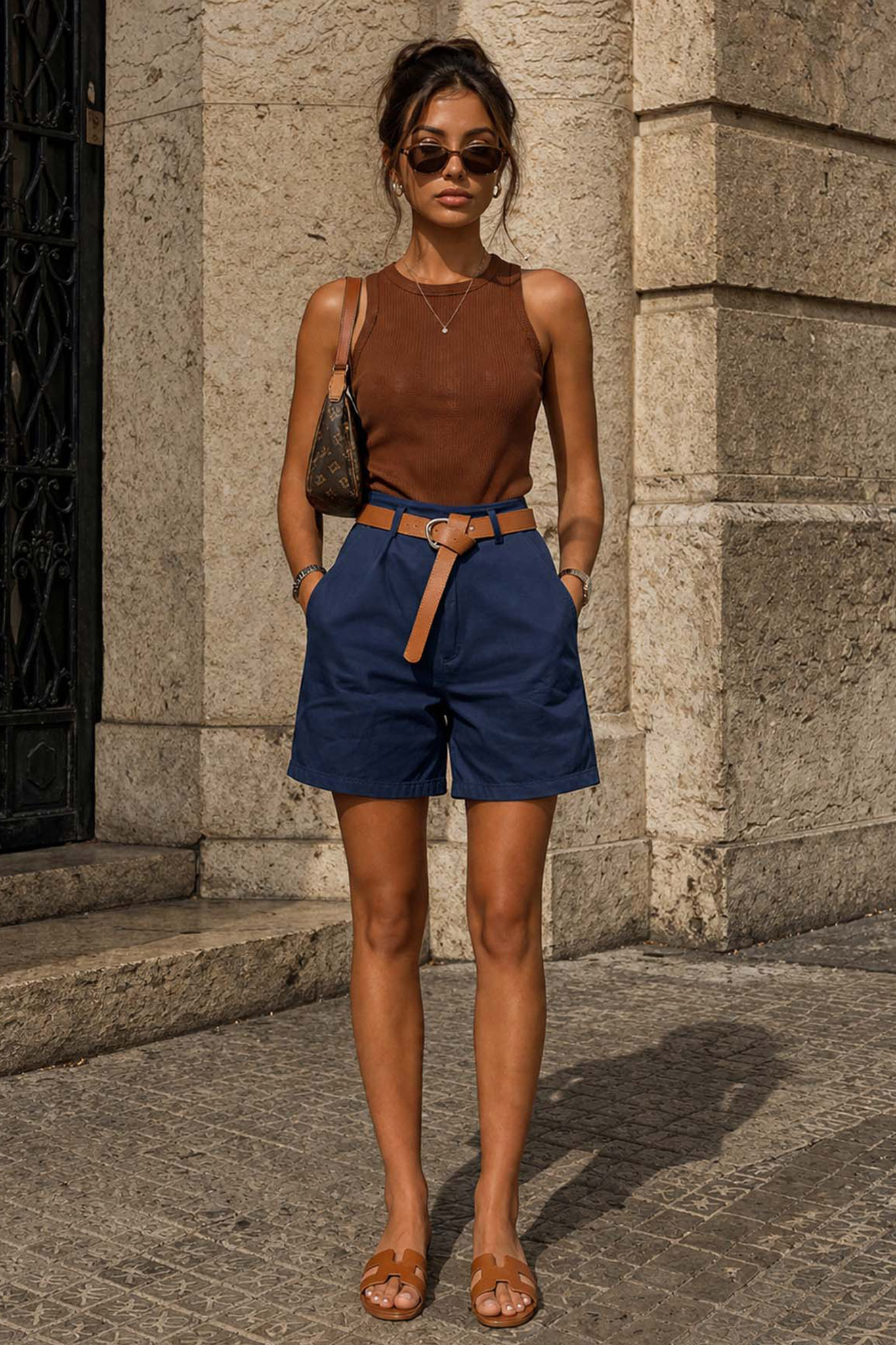 Κομψή υφασμάτινη βερμούδα με ζωνάκι και τσέπες που συνδυάζει άνεση και στιλ για καθημερινές αλλά και πιο προσεγμένες εμφανίσεις. Διαθέτει ψηλόμεση γραμμή που κολακεύει τη σιλουέτα. Ιδανική επιλογή για καλοκαιρινά looks, φοριέται εύκολα με tops, πουκάμισα ή basic t-shirts.