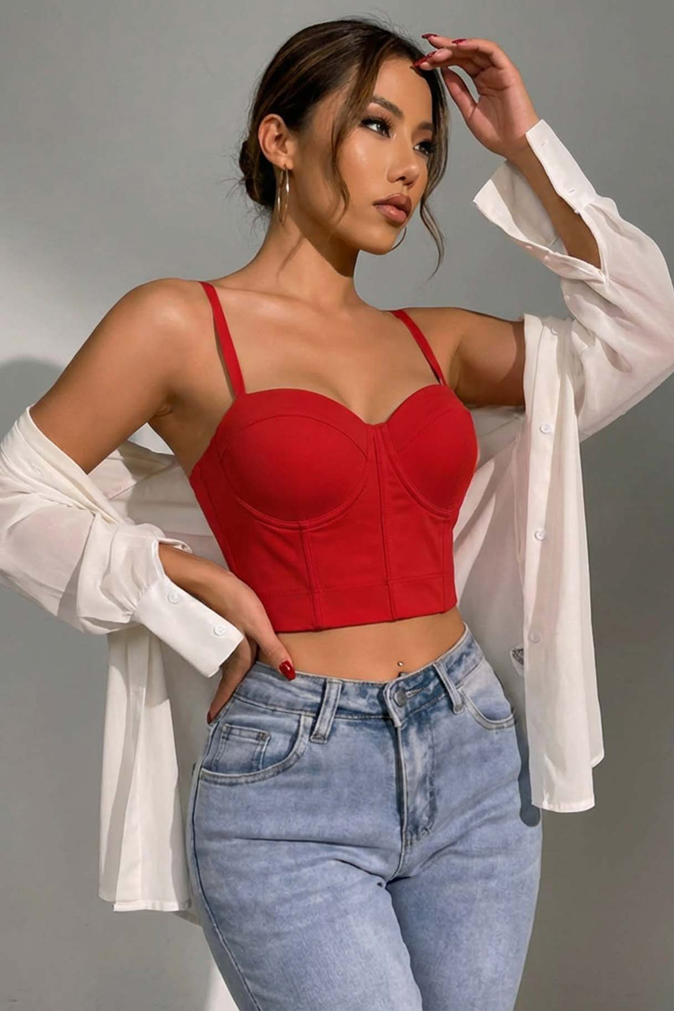 Asahicrop τοπ κορσές κόκκινο
