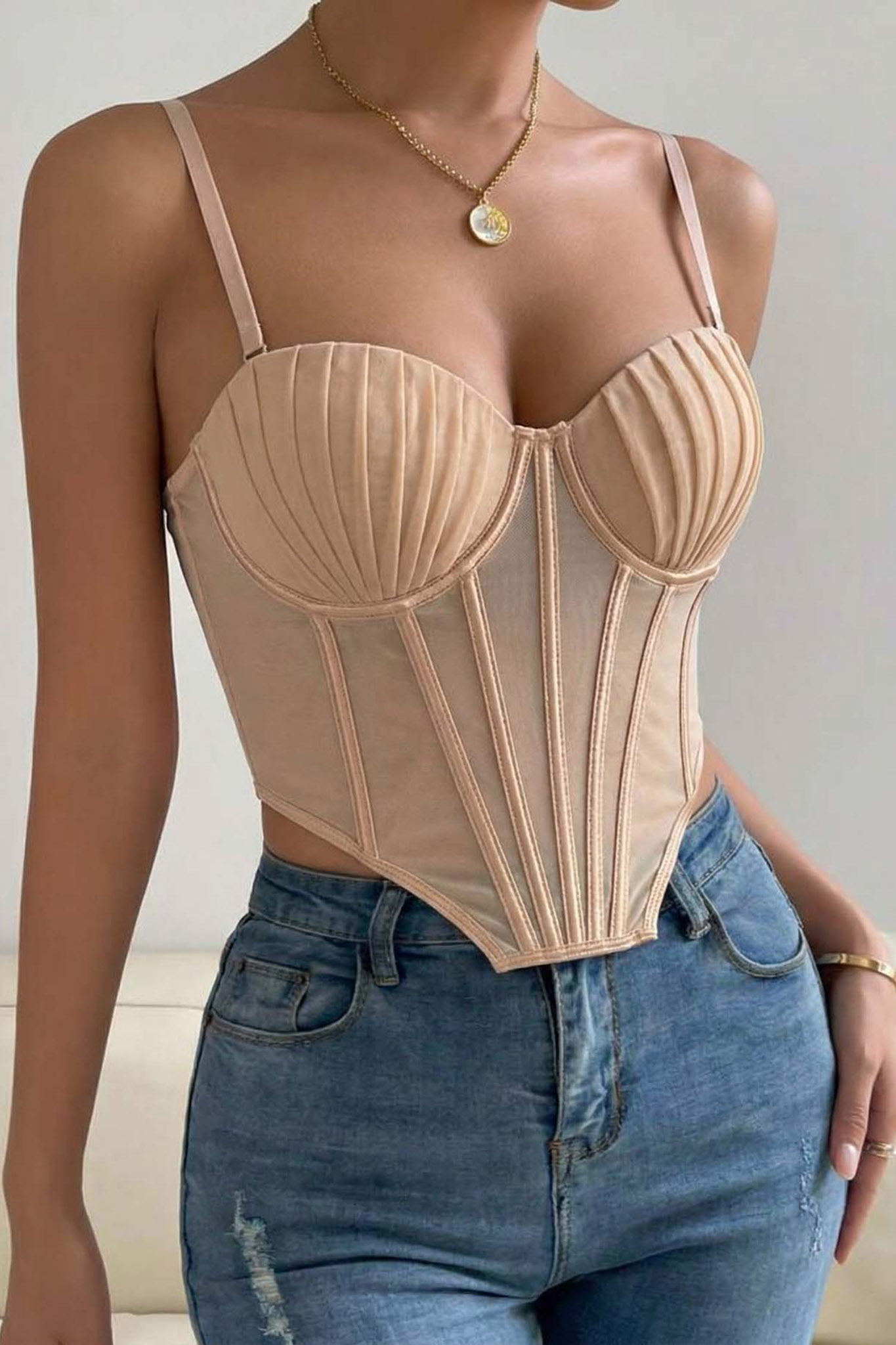 Ashleyκορσές με διαφάνεια μπεζ