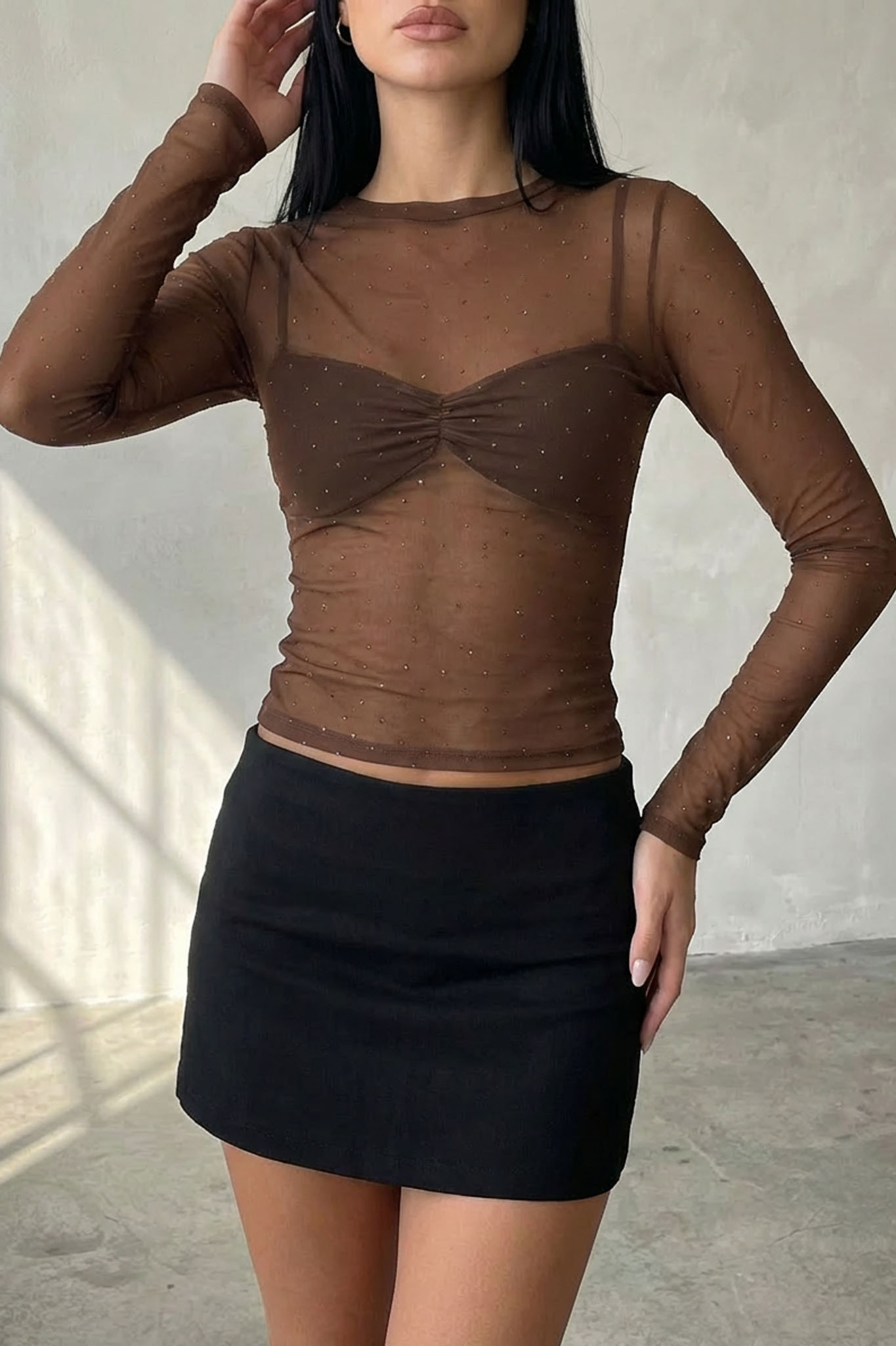Μακρυμάνικη μπλούζα με στρας. Διαφανίζει και είναι εφαρμοστή.