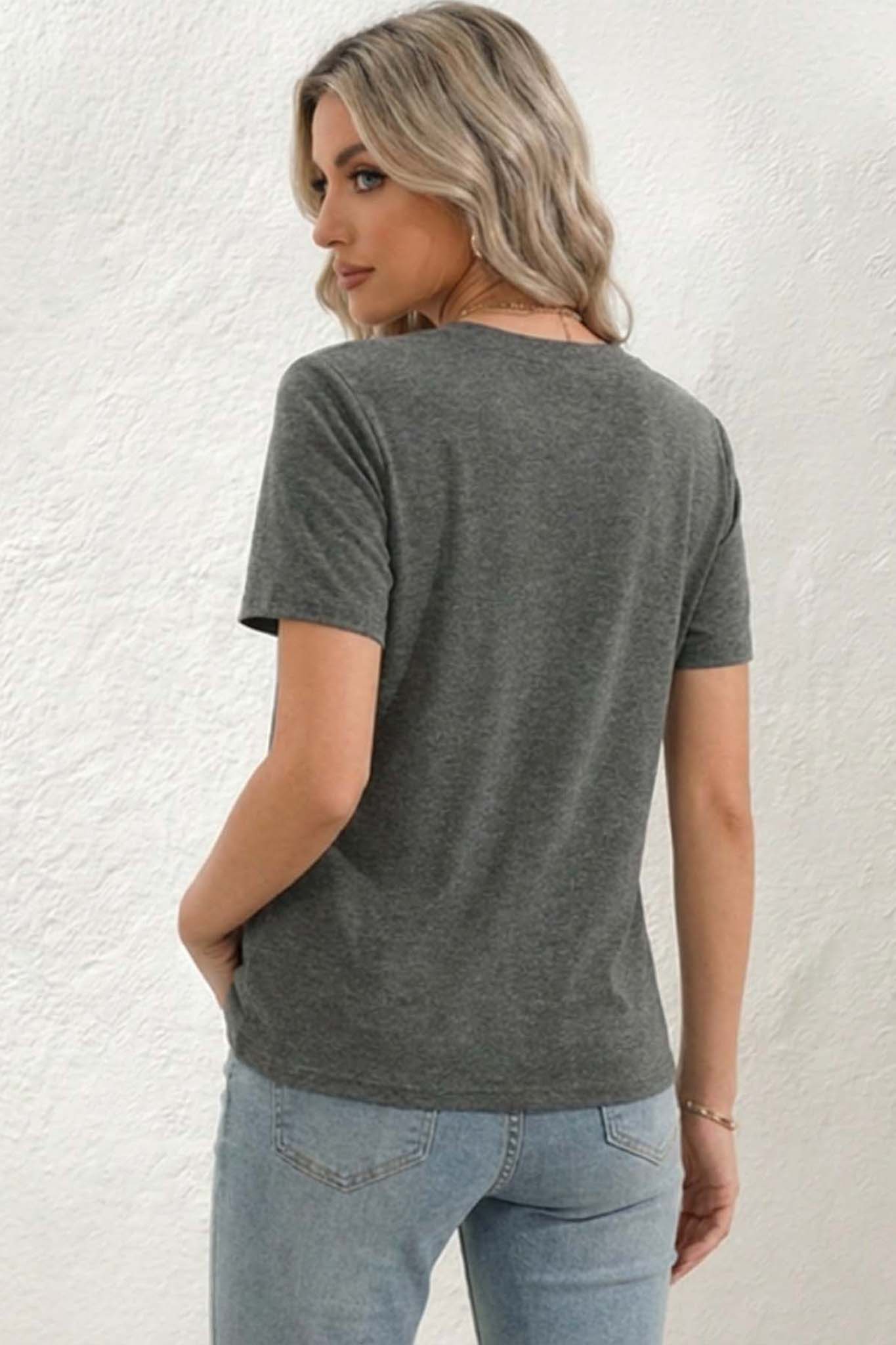 Mπλούζα με V λαιμόκοψη και κοντά μανίκια.Πρόκειται για ένα κομμάτι-κλειδί με ελαφρώς άνετη εφαρμογή, το οποίο είναι ιδανικό για καθημερινές εμφανίσεις.