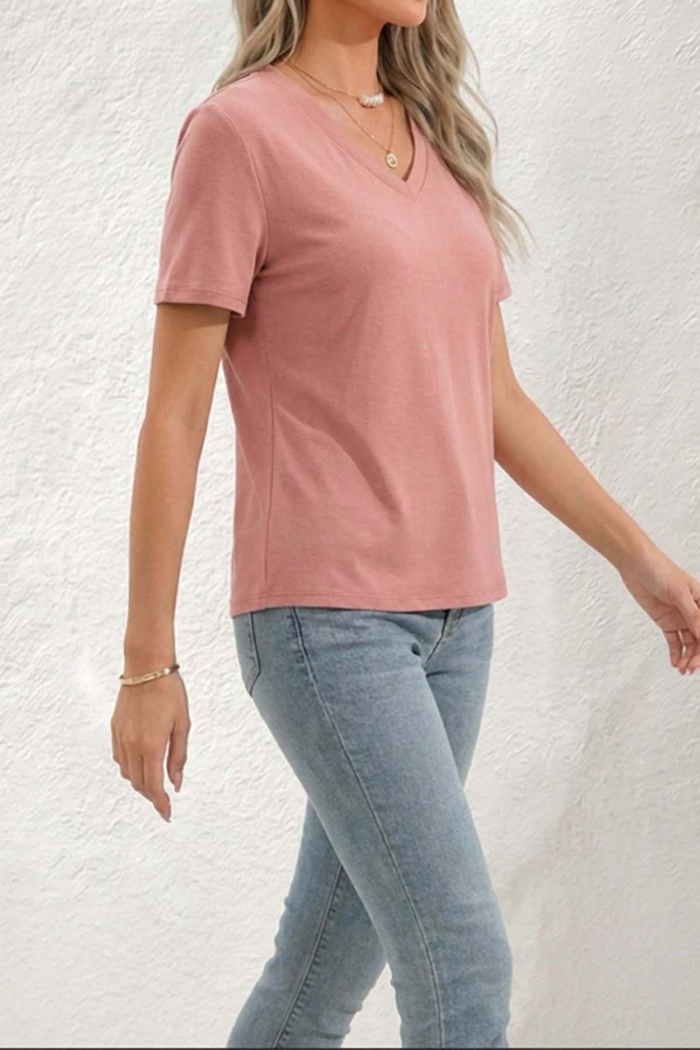 Mπλούζα με V λαιμόκοψη και κοντά μανίκια.Πρόκειται για ένα κομμάτι-κλειδί με ελαφρώς άνετη εφαρμογή, το οποίο είναι ιδανικό για καθημερινές εμφανίσεις.