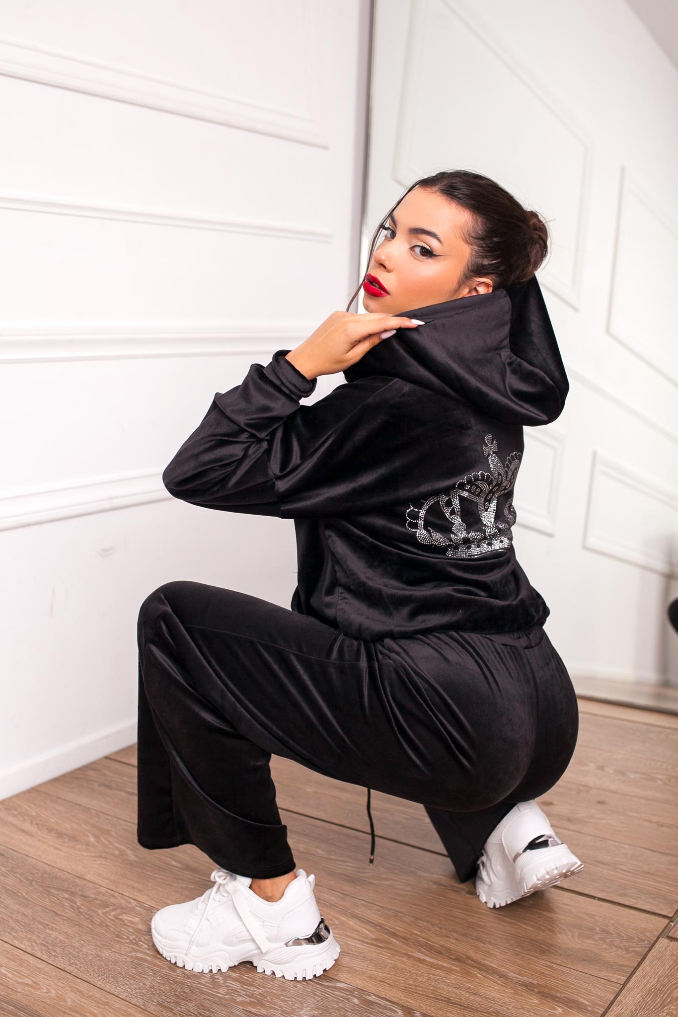 Auraσετ ζακέτα-παντελόνι βελούδινο με strass μαύρο