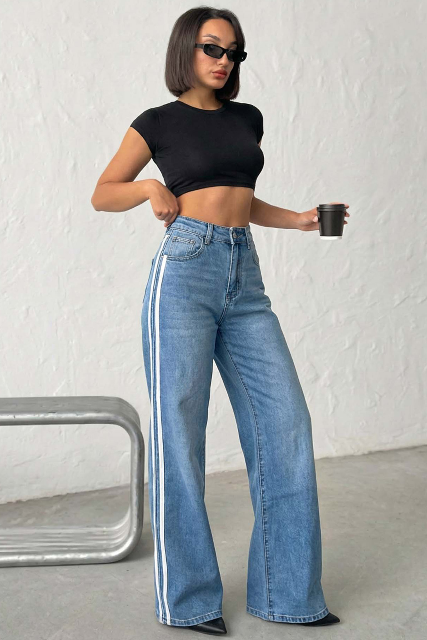 Aveliaτζιν παντελόνι με ρίγες μπλε