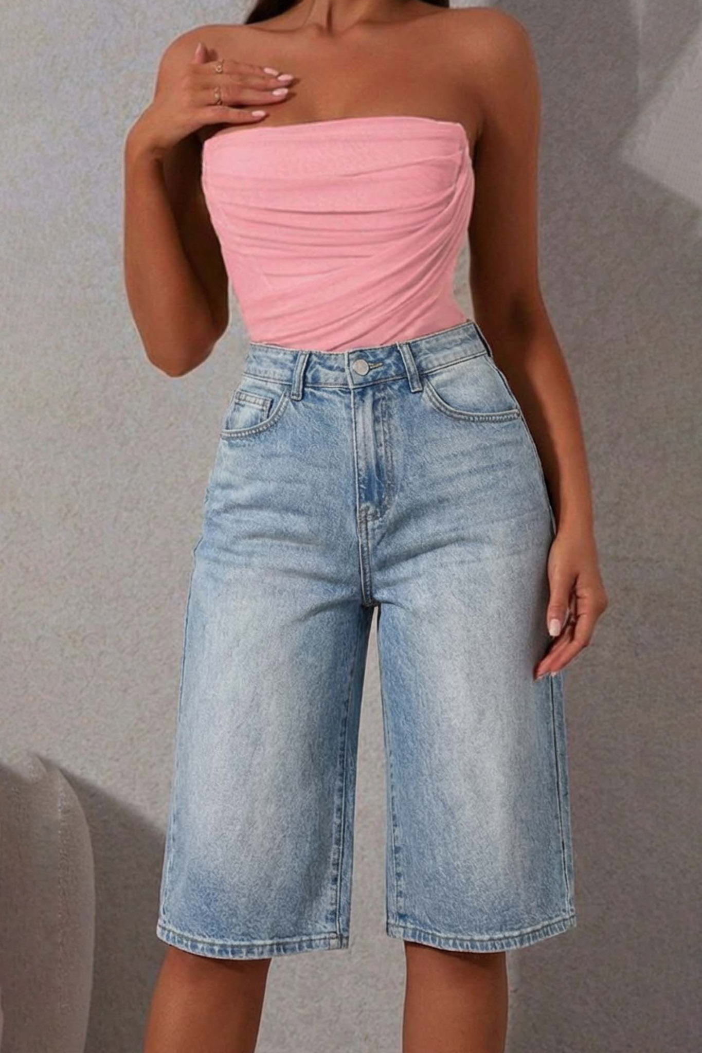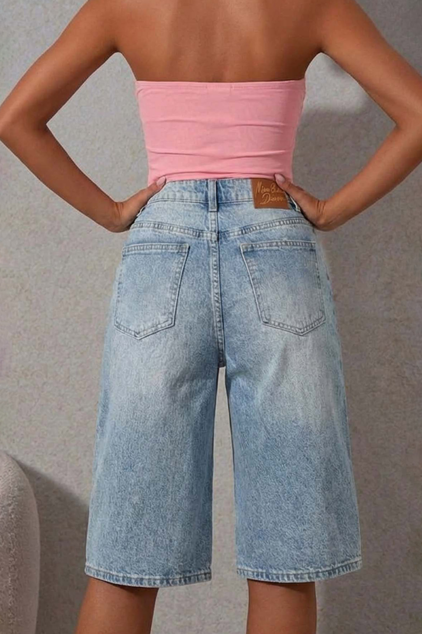 Τζιν βερμούδα ψηλόμεση σε ίσια άνετη γραμμή. Ιδανικό για καθημερινές εμφανίσεις.