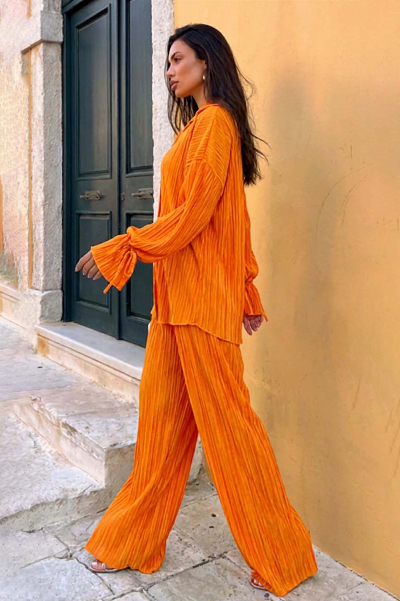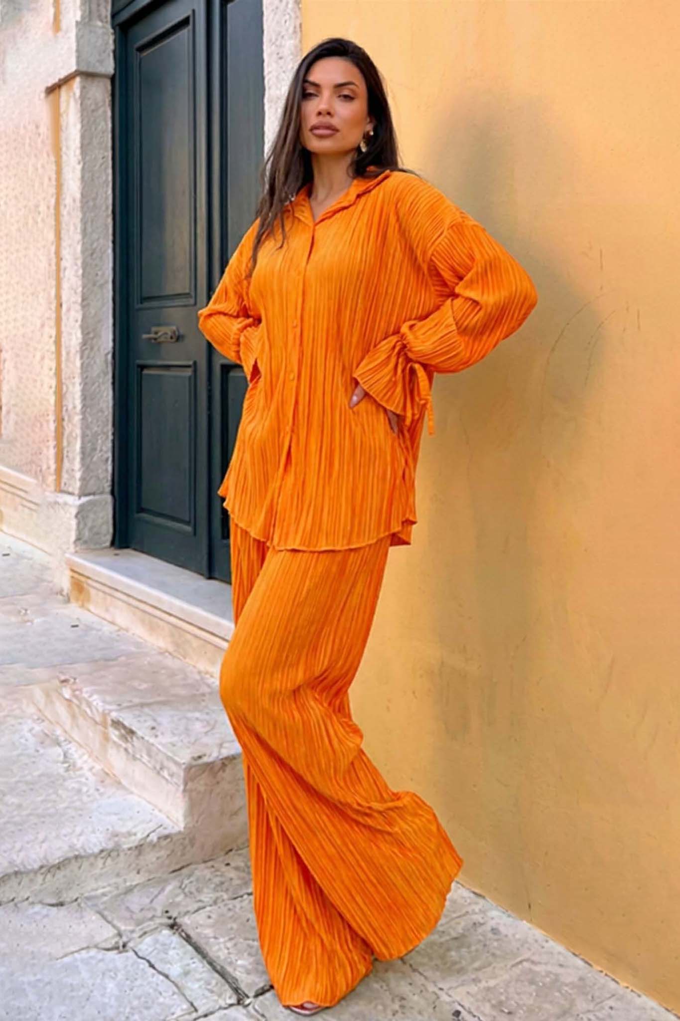 Axeliaσετ πουκάμισο – παντελόνα πλισέ πορτοκαλί