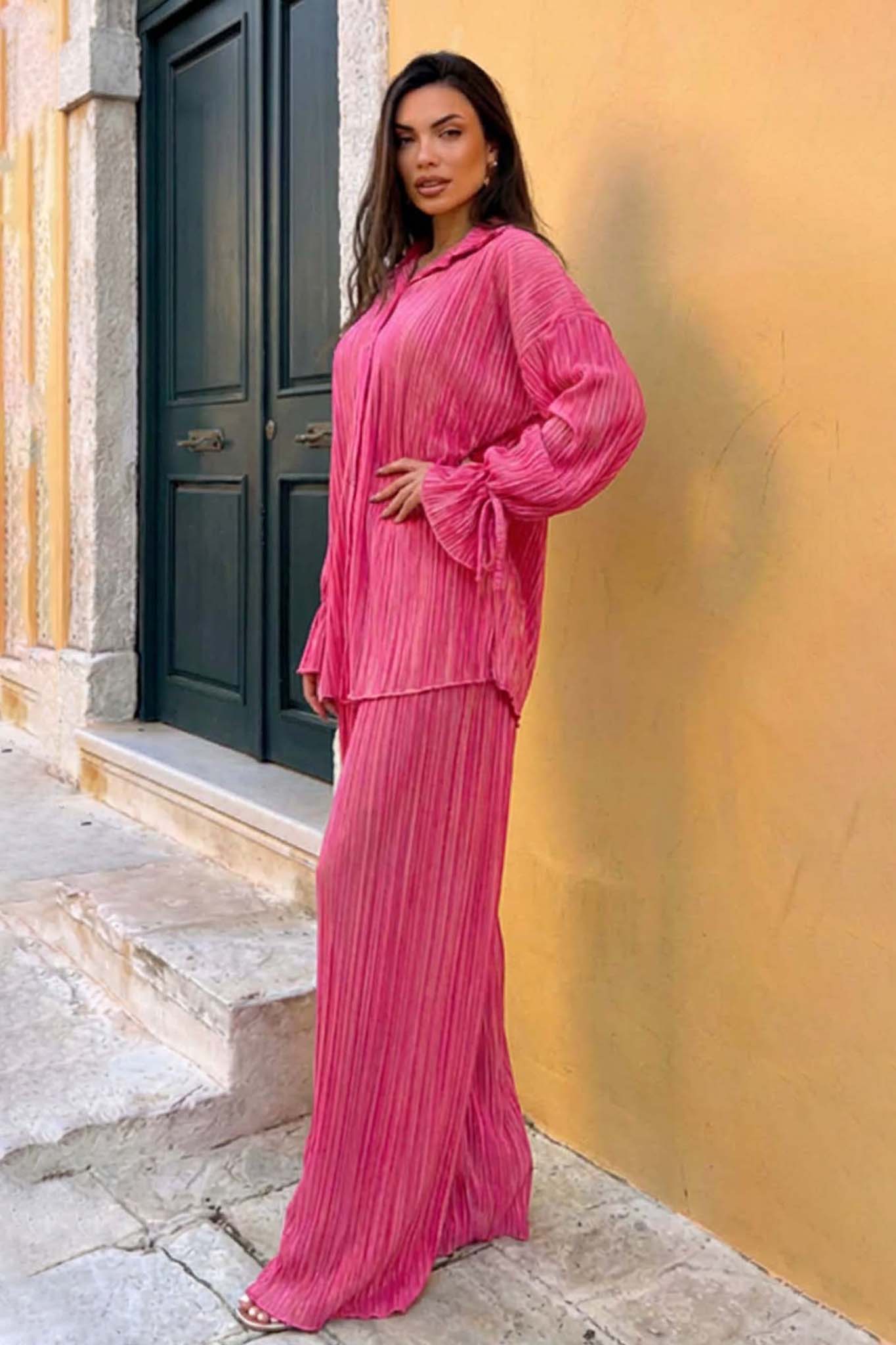 Axeliaσετ πουκάμισο – παντελόνα πλισέ ροζ