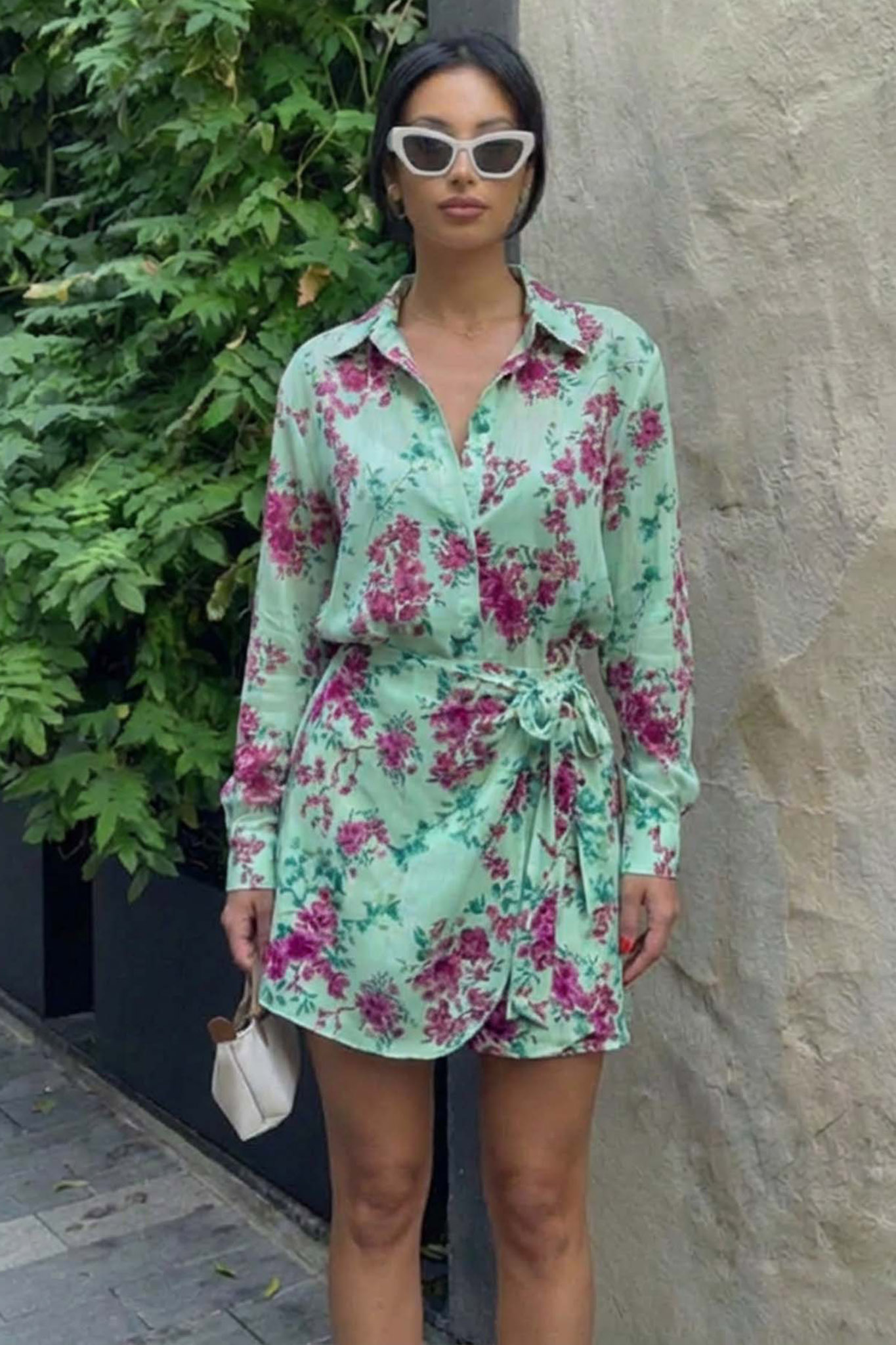 Azaleaσετ πουκάμισο-κρουάζε μίνι φούστα floral βεραμάν
