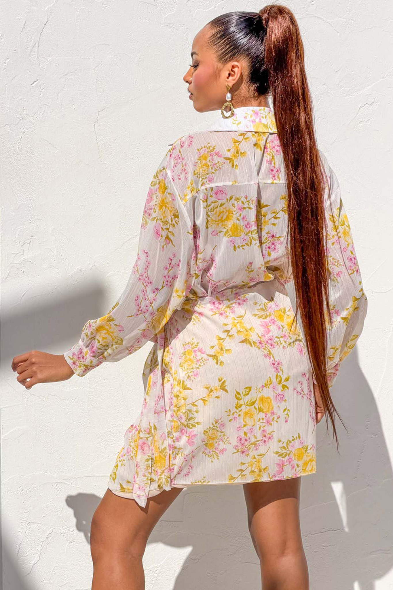 Azaleaσετ πουκάμισο-κρουάζε μίνι φούστα floral κίτρινο