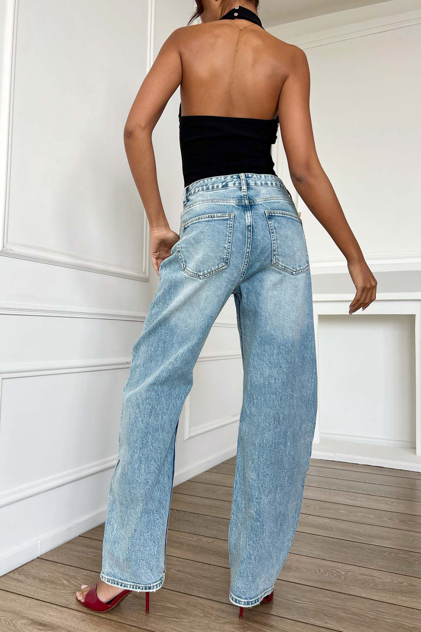 Ένα διαχρονικό ψηλόμεσο τζιν παντελόνι σε φαρδιά γραμμή. Με άνετη εφαρμογή που κολακεύει κάθε σώμα, είναι η ιδανική βάση για να δημιουργήσετε αμέτρητα stylish outfits, από casual μέχρι βραδινά. Μήκος 104cm, μέση 68cm.