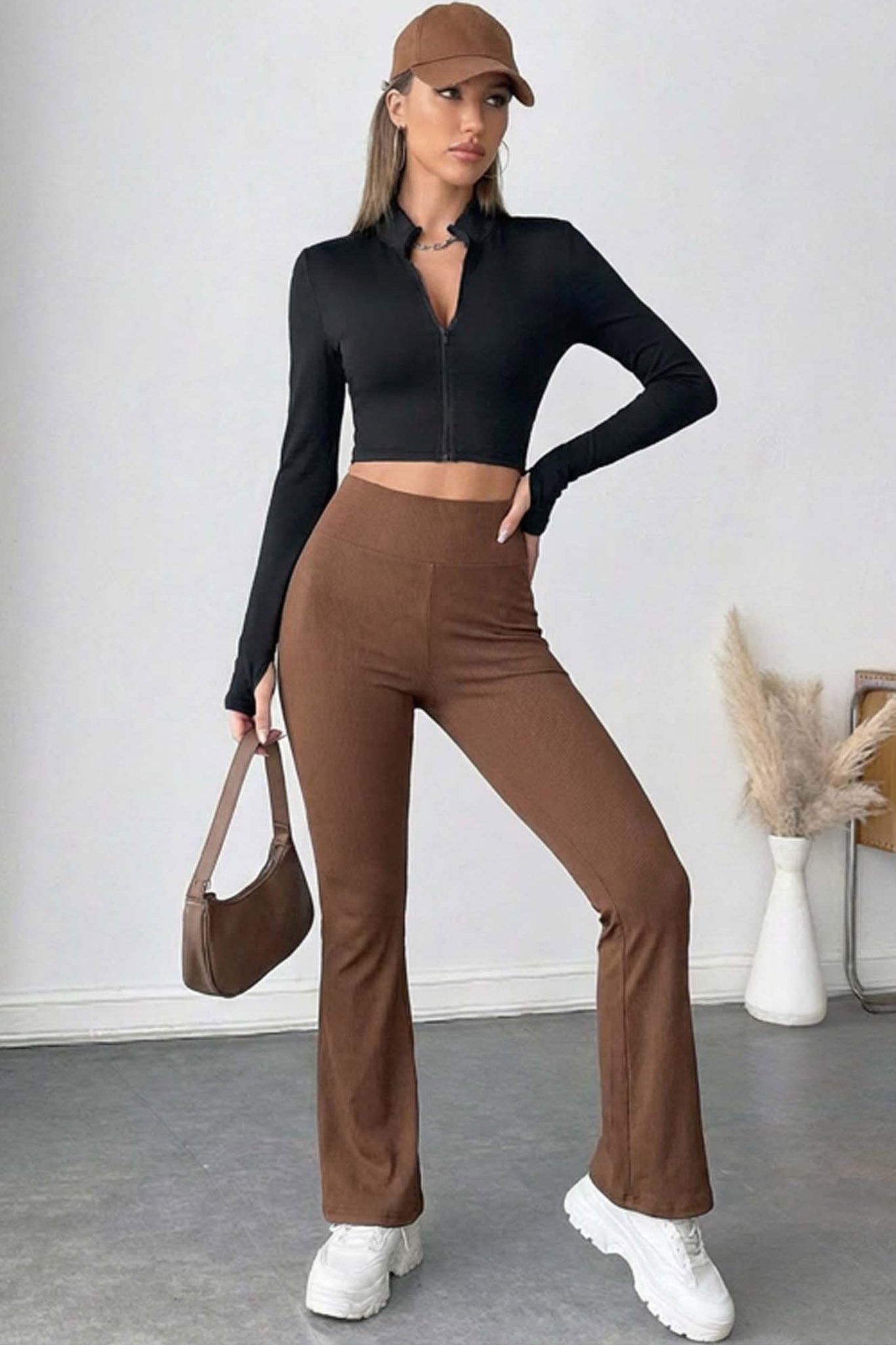 Biankaψηλόμεσο κολάν καμπάνα καφέ