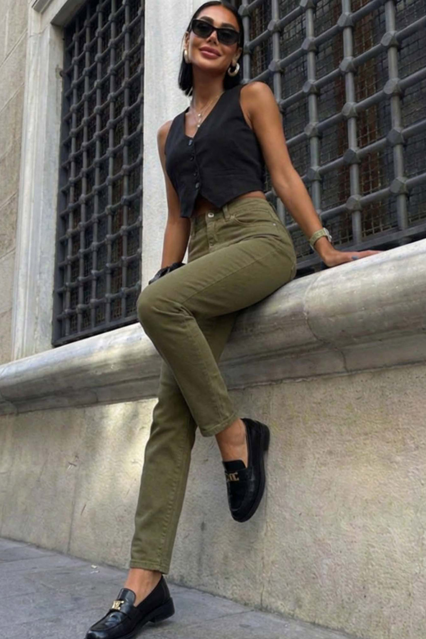 Ψηλόμεσο τζιν σε ίσια γραμμή αποτελεί το απόλυτο “staple” κομμάτι για κομψές εμφανίσεις κάθε εποχή. Είναι η ιδανική επιλογή για να δημιουργήσεις ένα outfit που ισορροπεί με ευκολία ανάμεσα στο casual και το business chic στυλ.