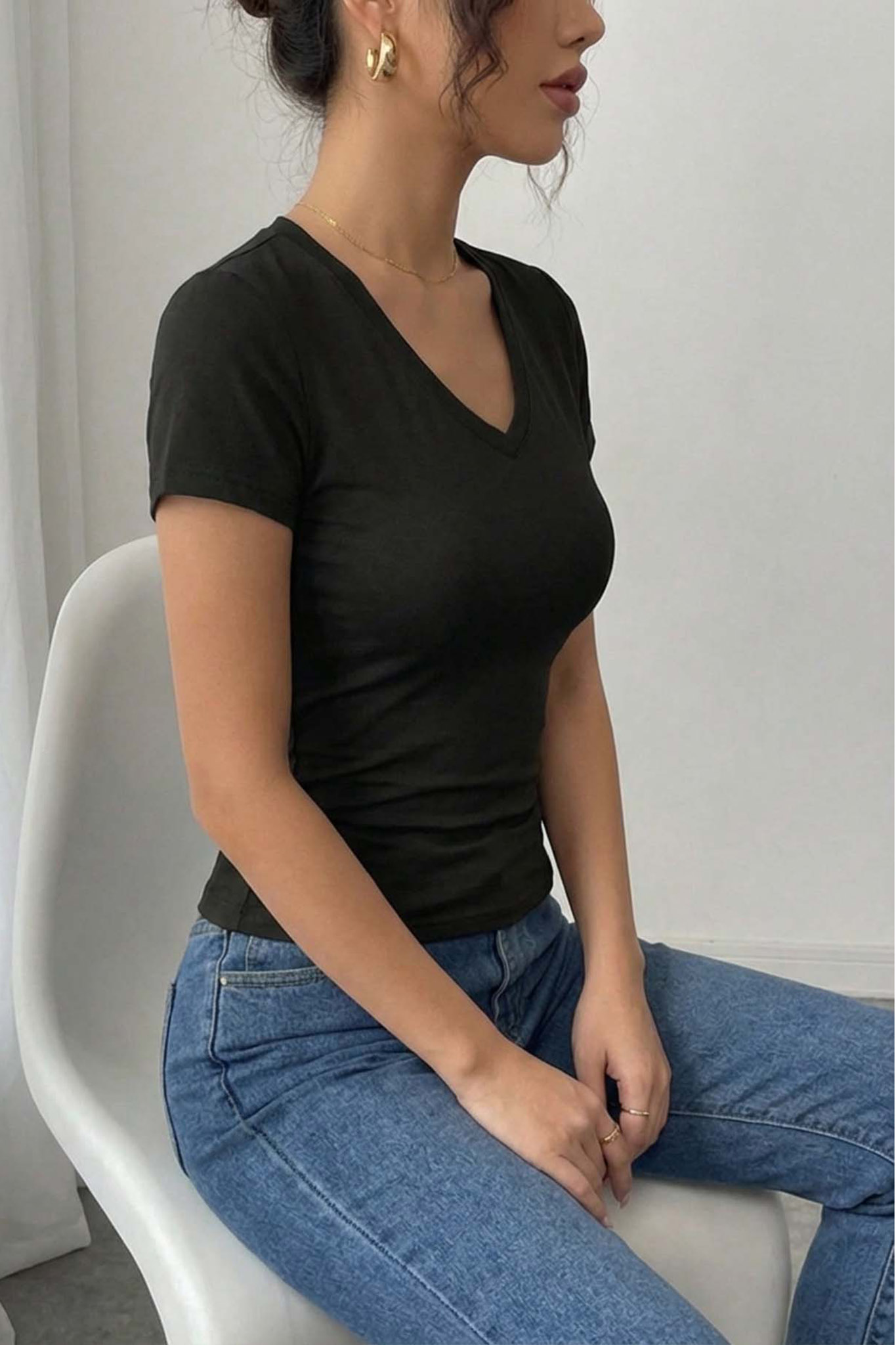 Κοντομάνικη μπλούζα με V λαιμόκοψη. Ιδανικό για καθημερινές και άνετες εμφανίσεις.