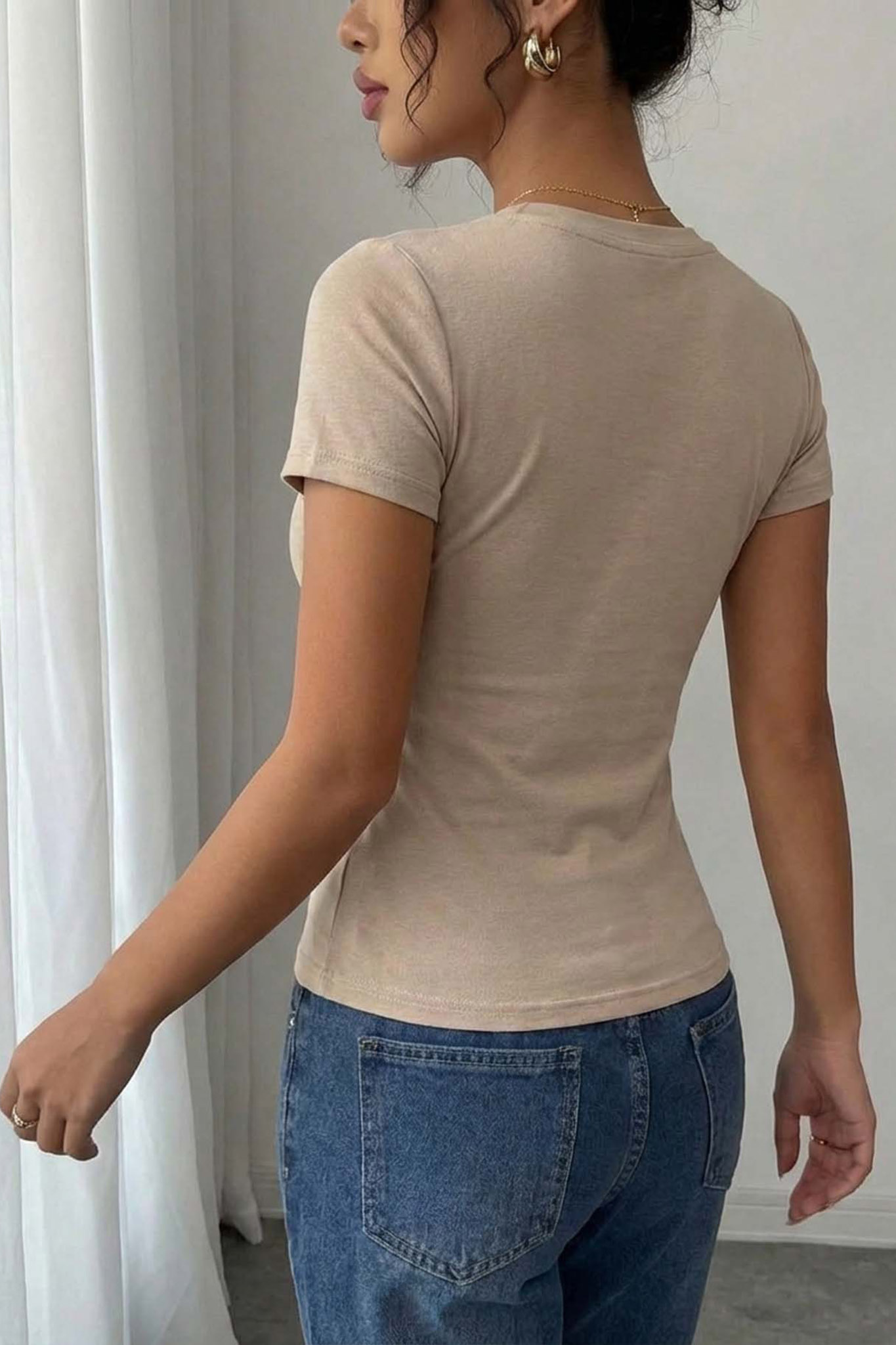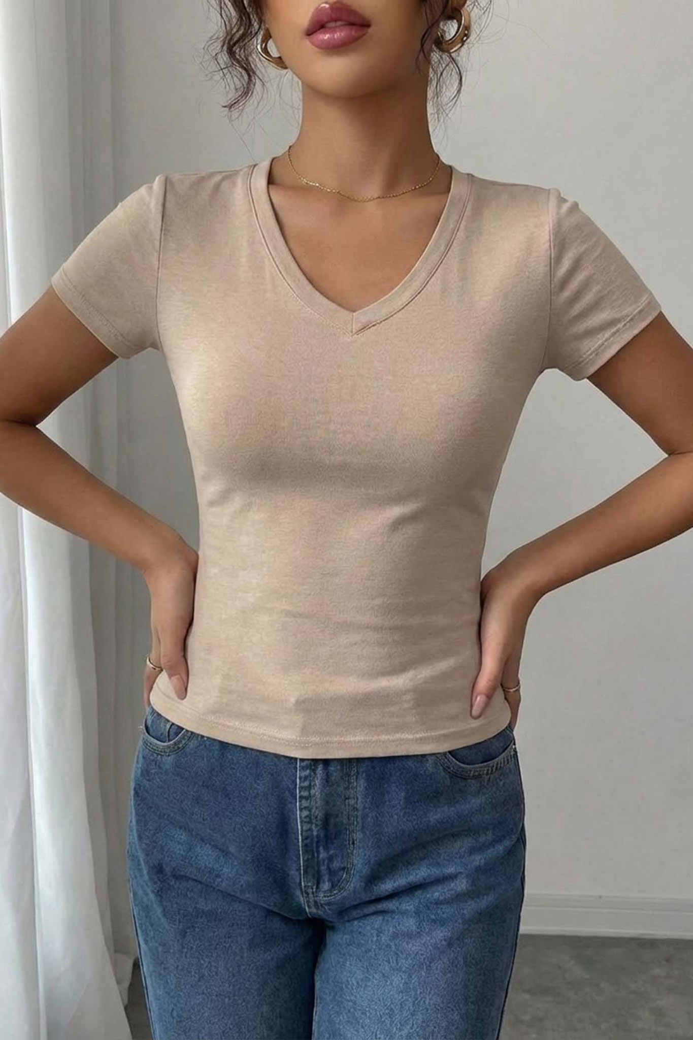 Κοντομάνικη μπλούζα με V λαιμόκοψη. Ιδανικό για καθημερινές και άνετες εμφανίσεις.