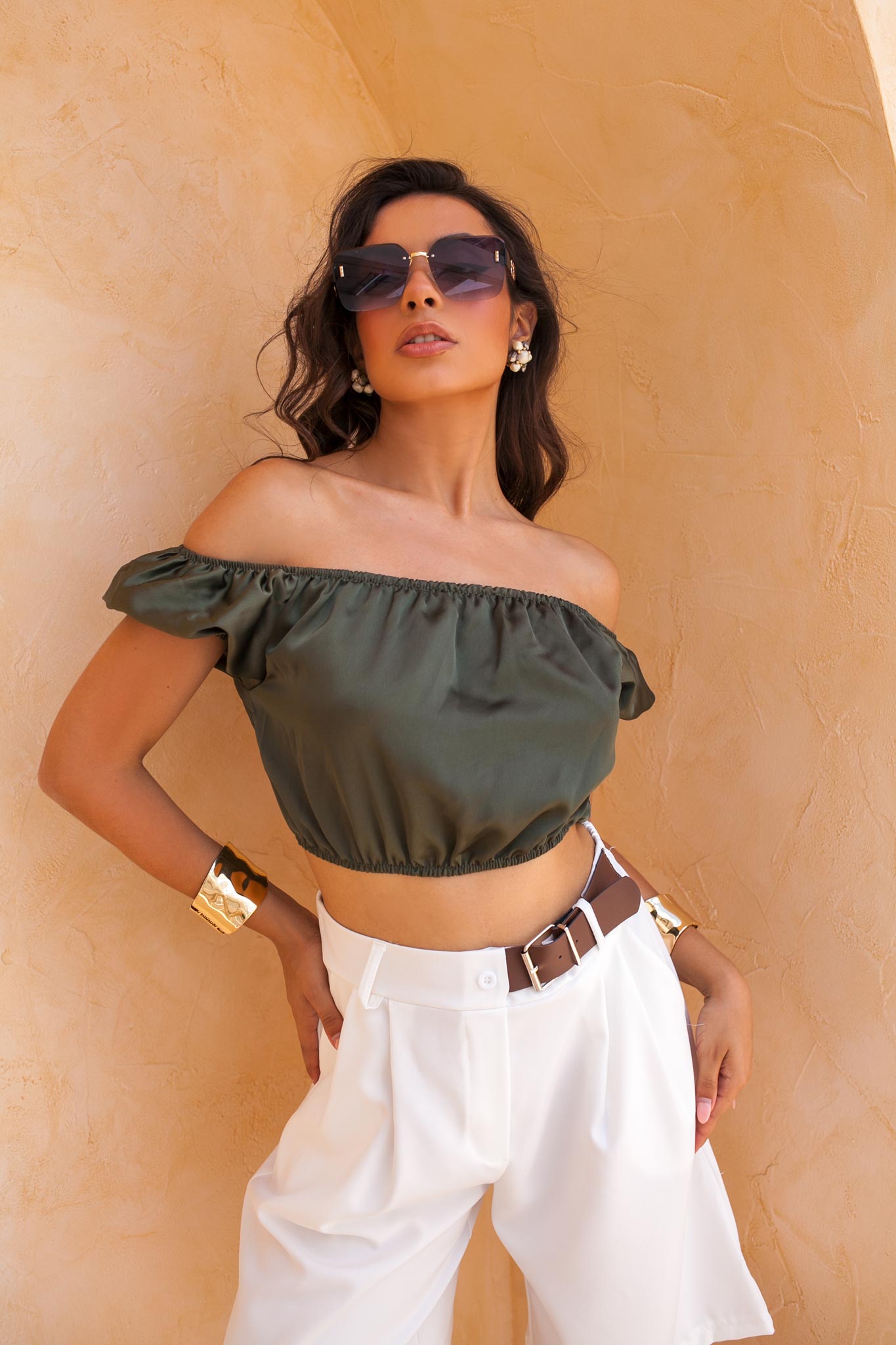Cabernetcrop top με όψη σατέν χακί