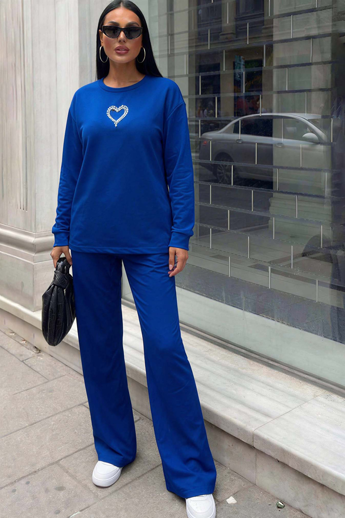 Σετ από μακρυμάνικη μπλούζα με εντυπωσιακό κέντημα καρδιάς στο στήθος και ασορτί παντελόνα σε ίσια, άνετη γραμμή που κολακεύει κάθε κίνηση. Κατασκευασμένο από απαλό, ποιοτικό ύφασμα, είναι η ιδανική επιλογή για τις καθημερινές σας βόλτες, το ταξίδι ή τις χαλαρές στιγμές στο σπίτι, προσφέροντας μια προσεγμένη και φωτεινή εμφάνιση με ελάχιστη προσπάθεια.