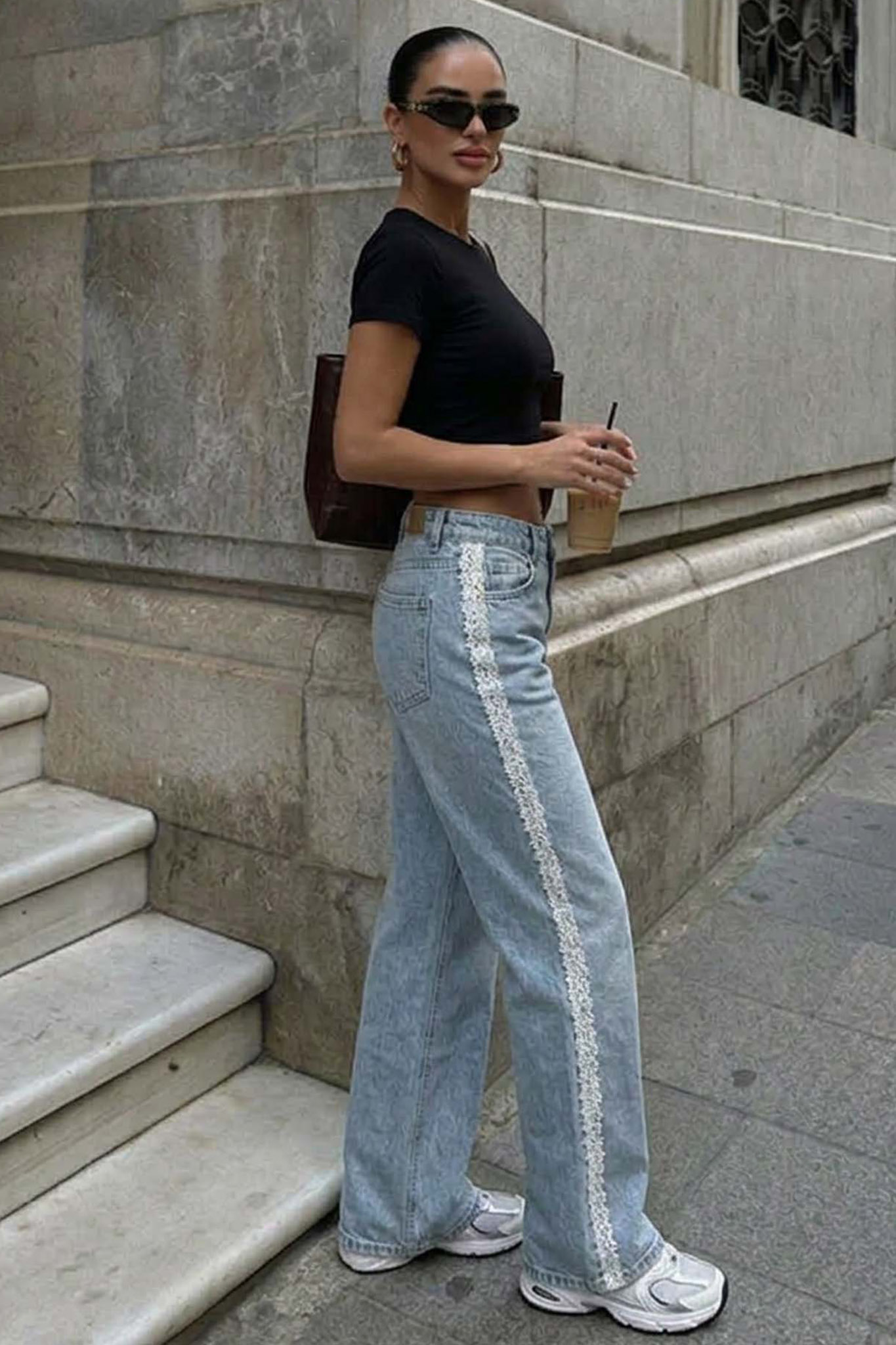 Tζιν σε ανοιχτό μπλε χρώμα συνδυάζει την άνεση με το θηλυκό στυλ, με πλευρικές λεπτομέρειες από λευκή δαντέλα. Η ψηλόμεση, χαλαρή γραμμή του κολακεύει κάθε σιλουέτα, προσφέροντας έναν αέρα ανανέωσης στα καθημερινά σου look.