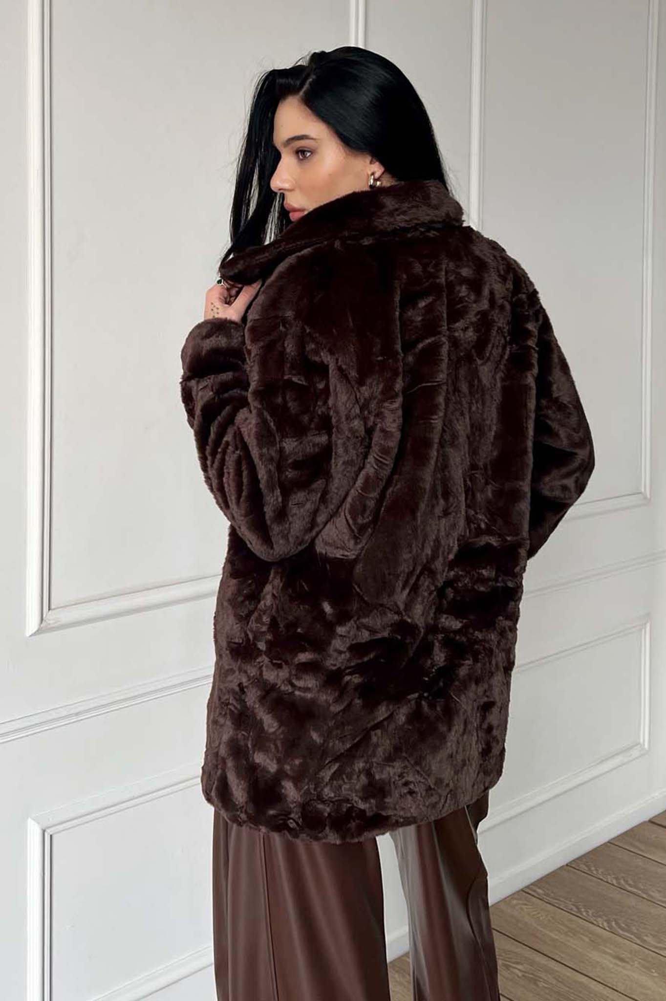 Πανωφόρι από οικολογική γούνα με γιακά και τσέπες. Έχει φόδρα εσωτερικά. Εκλεπτυσμένες γούνινες επιλογές για κορυφαίες εμφανίσεις τον χειμώνα. Δώστε μια luxury νότα στις εμφανίσεις σας! Μήκος 76cm. Στήθος 55cm