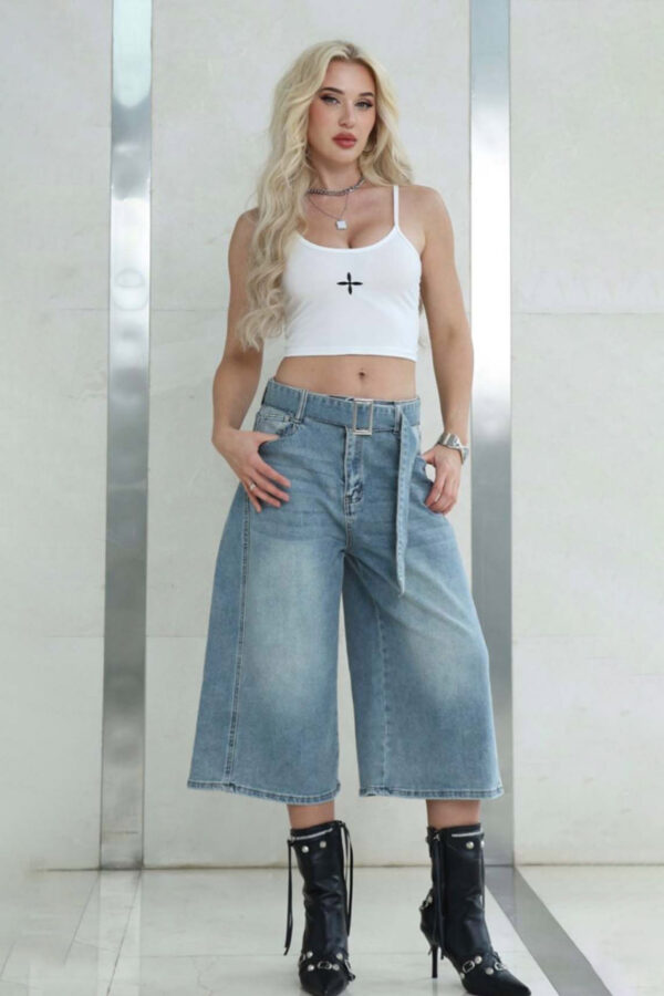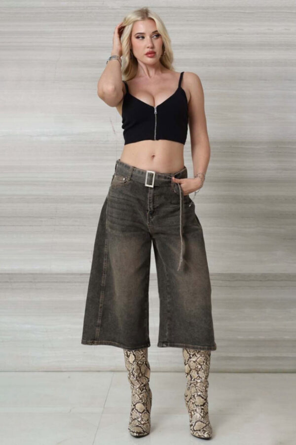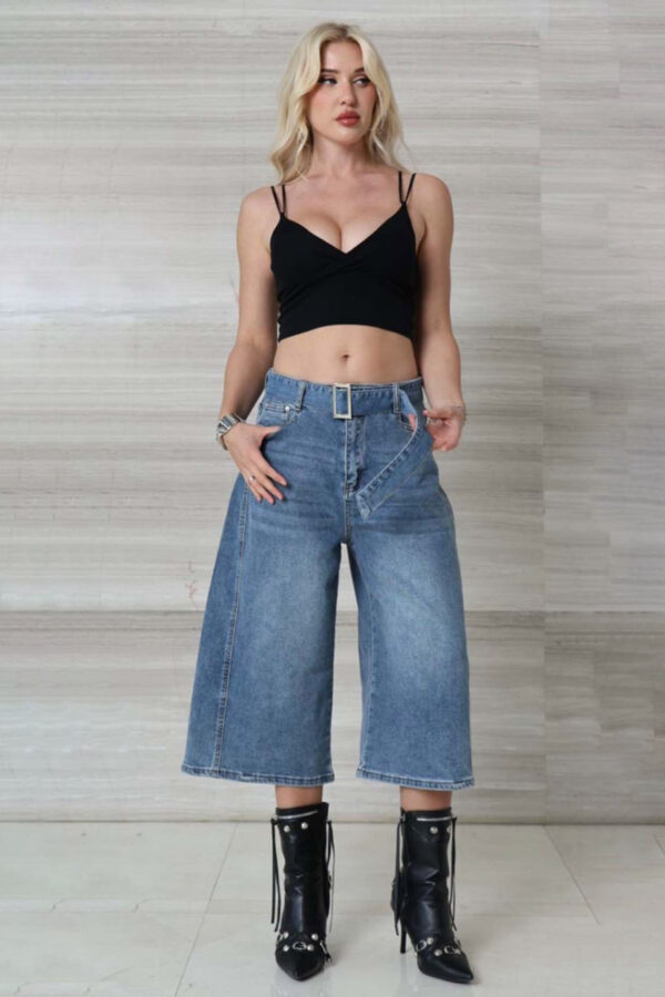 Τζιν σορτς βερμούδα σε φαρδιά γραμμή cargo που συνδυάζει άνεση και μοντέρνο urban στυλ. Διαθέτει κλασικό κούμπωμα με κουμπί και φερμουάρ, καθώς και πρακτικές τσέπες στο πλάι που προσθέτουν λειτουργικότητα και χαρακτήρα. Ιδανικό για statement εμφανίσεις και καθημερινά street style looks με ιδιαίτερο ύφος.