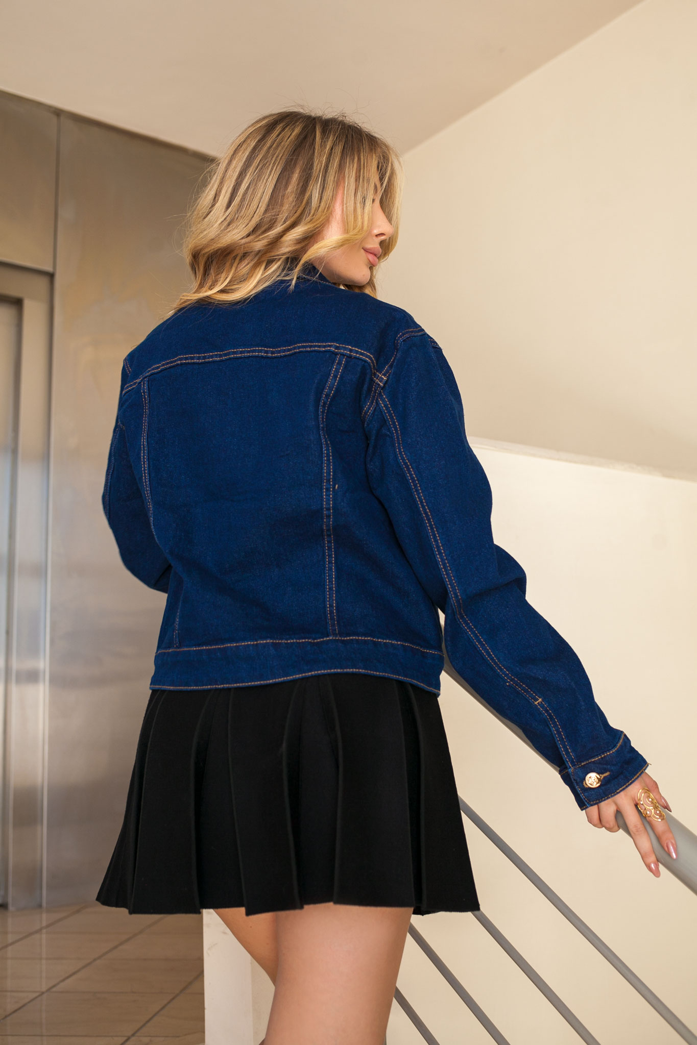 Τζιν τζάκετ, με μακριά μανίκια και εξωτερικές τσέπες. Κλείνει με κουμπιά. Μήκος 50cm στήθος 48cm μανίκι 62cm