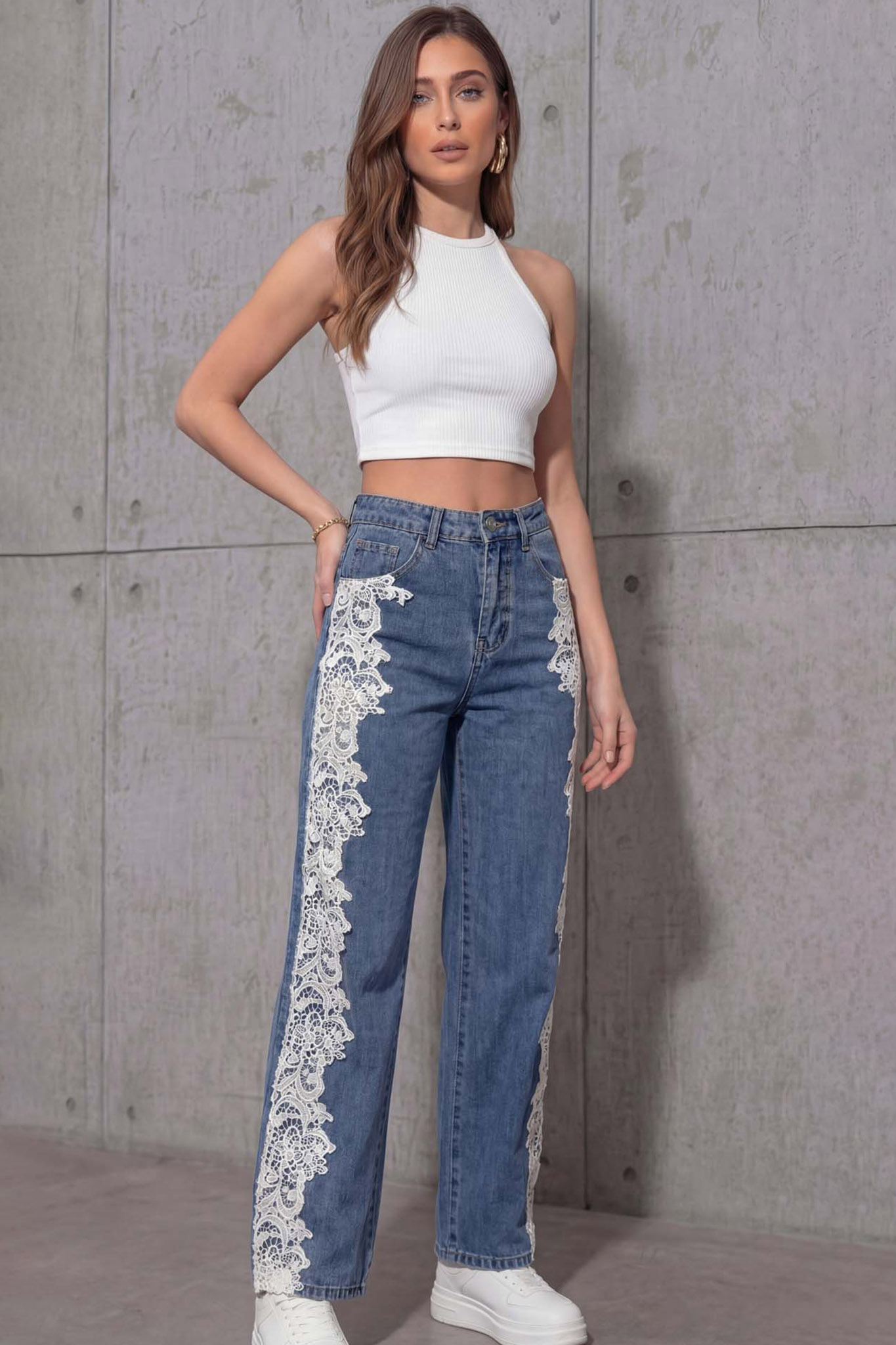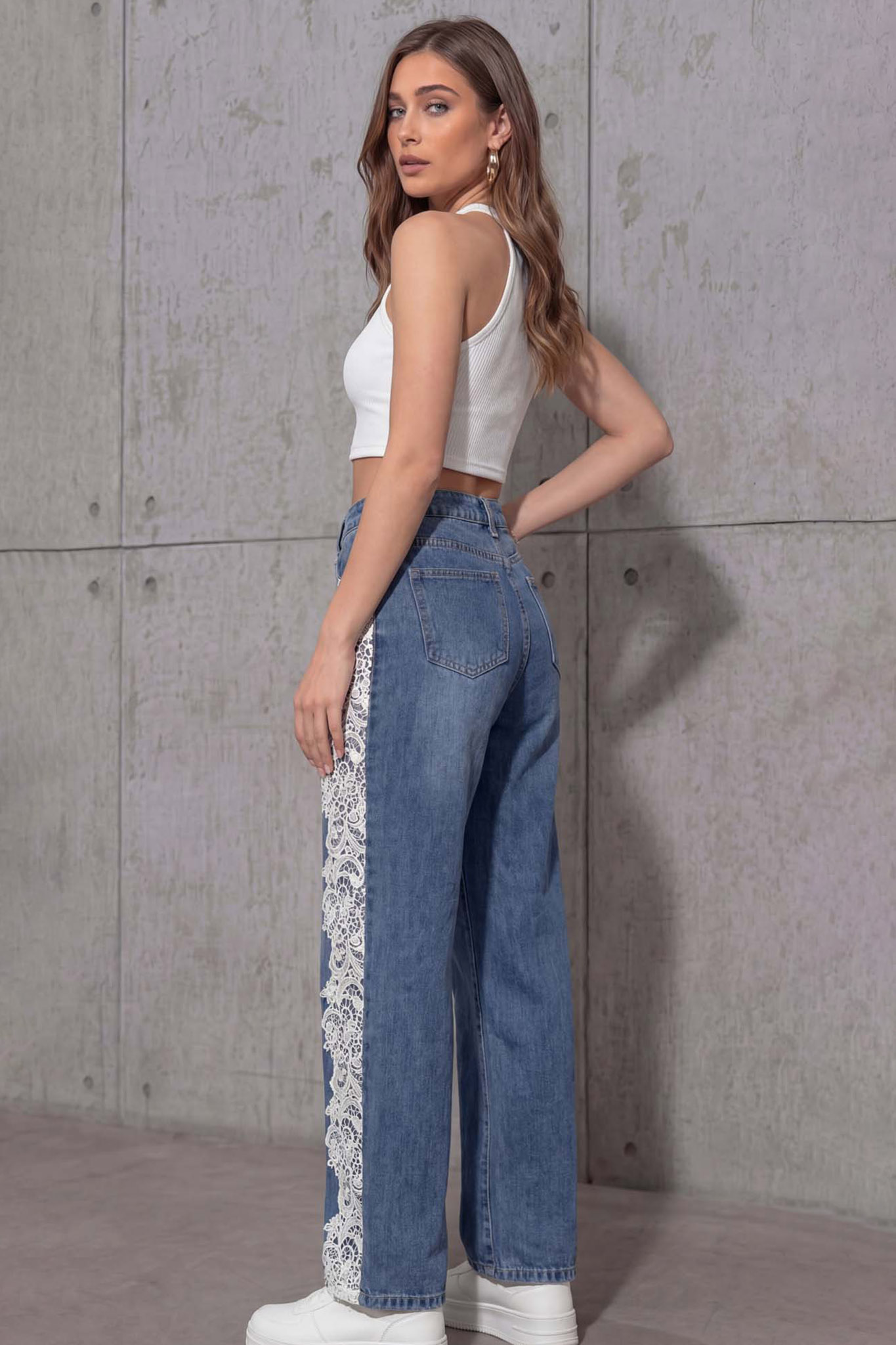 Τζιν παντελόνι με δαντέλα στο πλάι που προσδίδει μία ρομαντική και θηλυκή αισθητική.