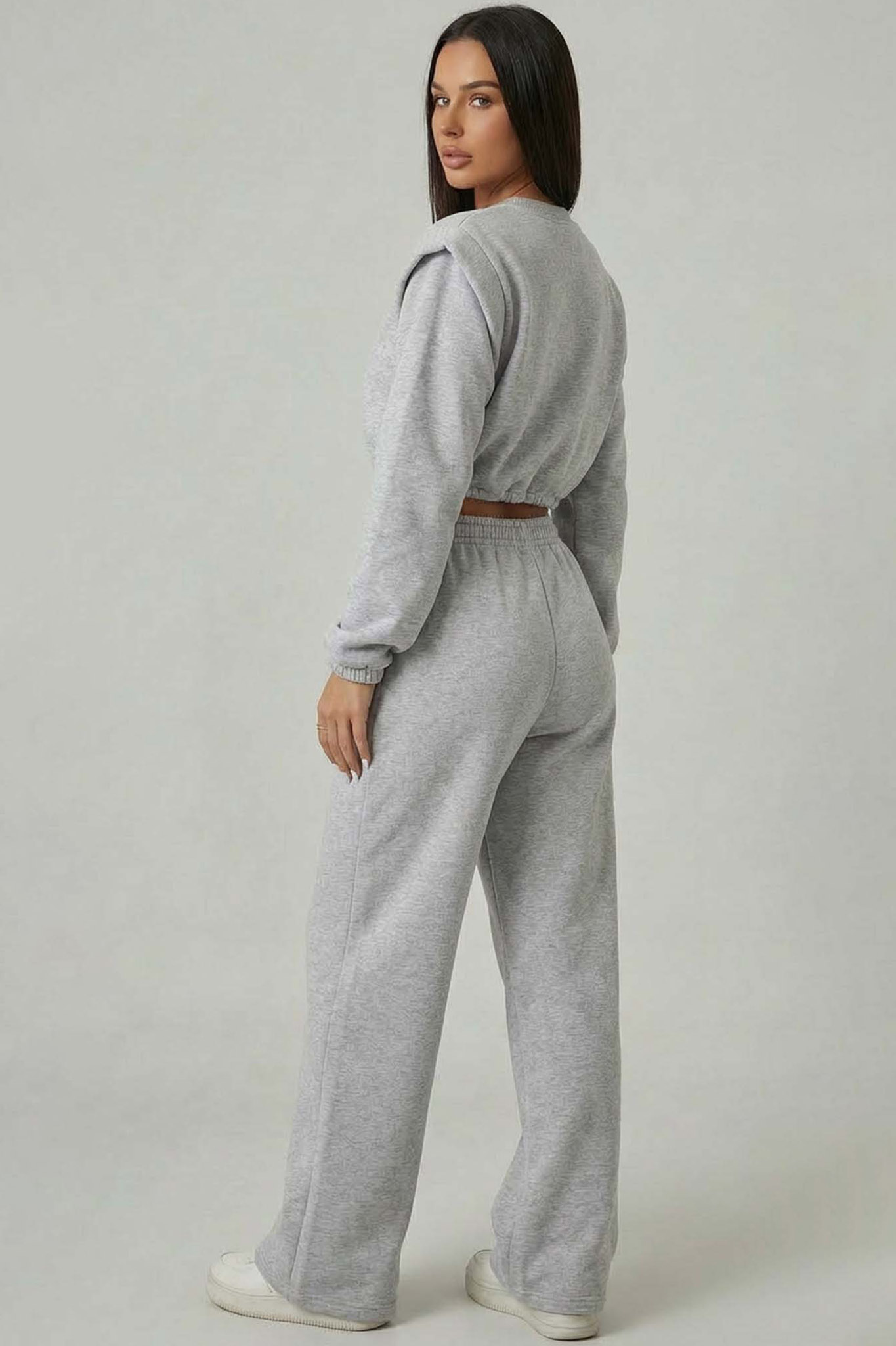 Σετ που αποτελείται από μοντέρνο cropped φούτερ και άνετο παντελόνι σε ίσια γραμμή. Ιδανικό για casual εμφανίσεις με άνεση και στυλ όλη μέρα.