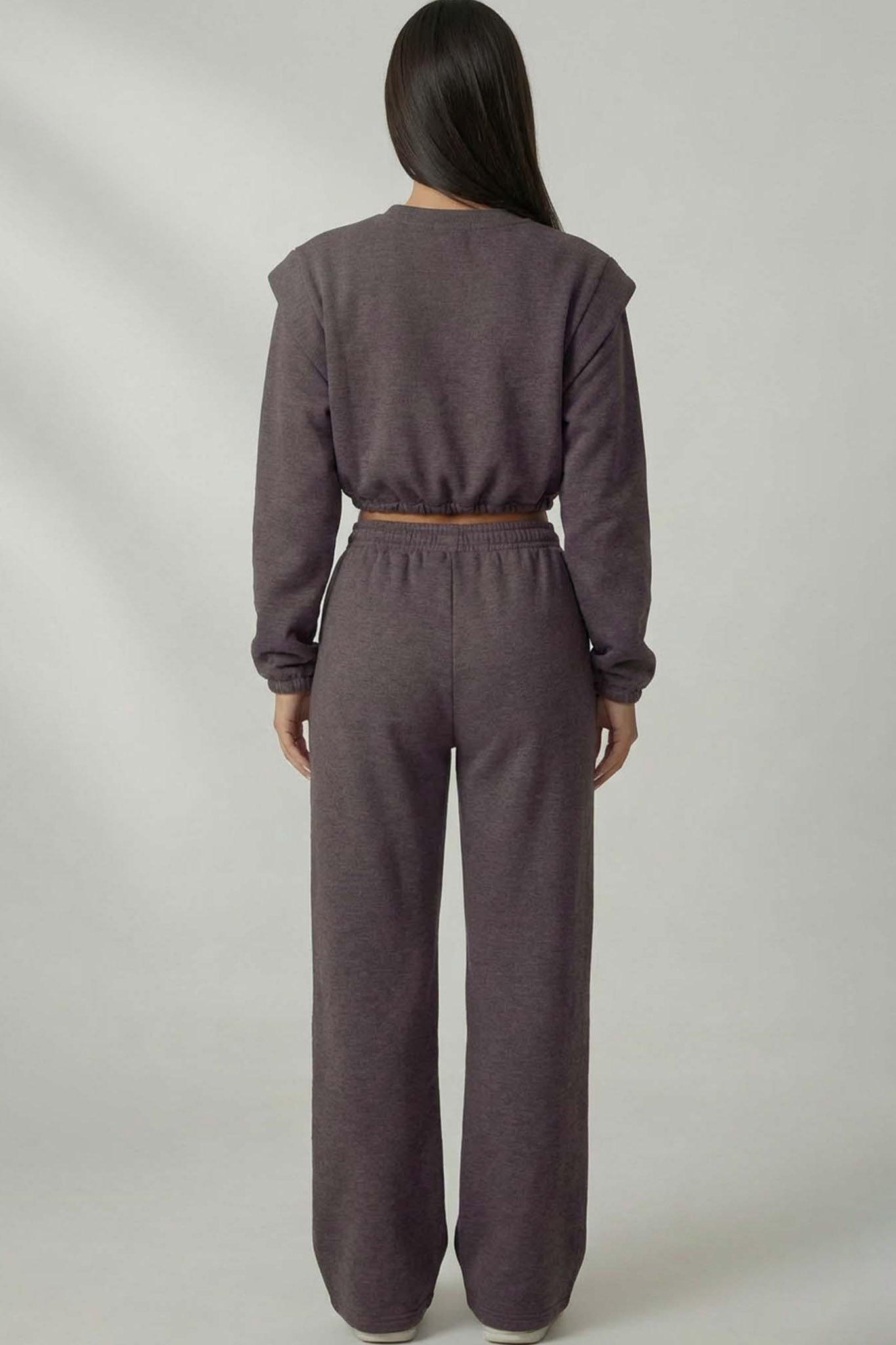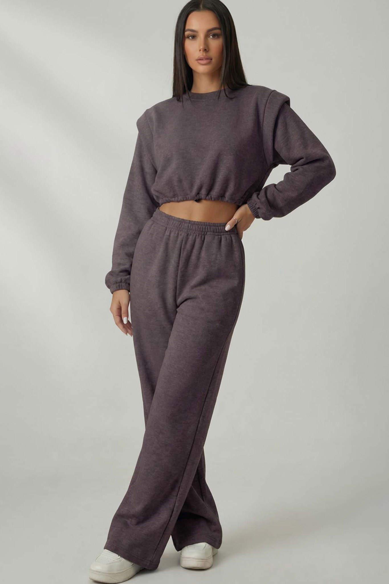 Σετ που αποτελείται από μοντέρνο cropped φούτερ και άνετο παντελόνι σε ίσια γραμμή. Ιδανικό για casual εμφανίσεις με άνεση και στυλ όλη μέρα.