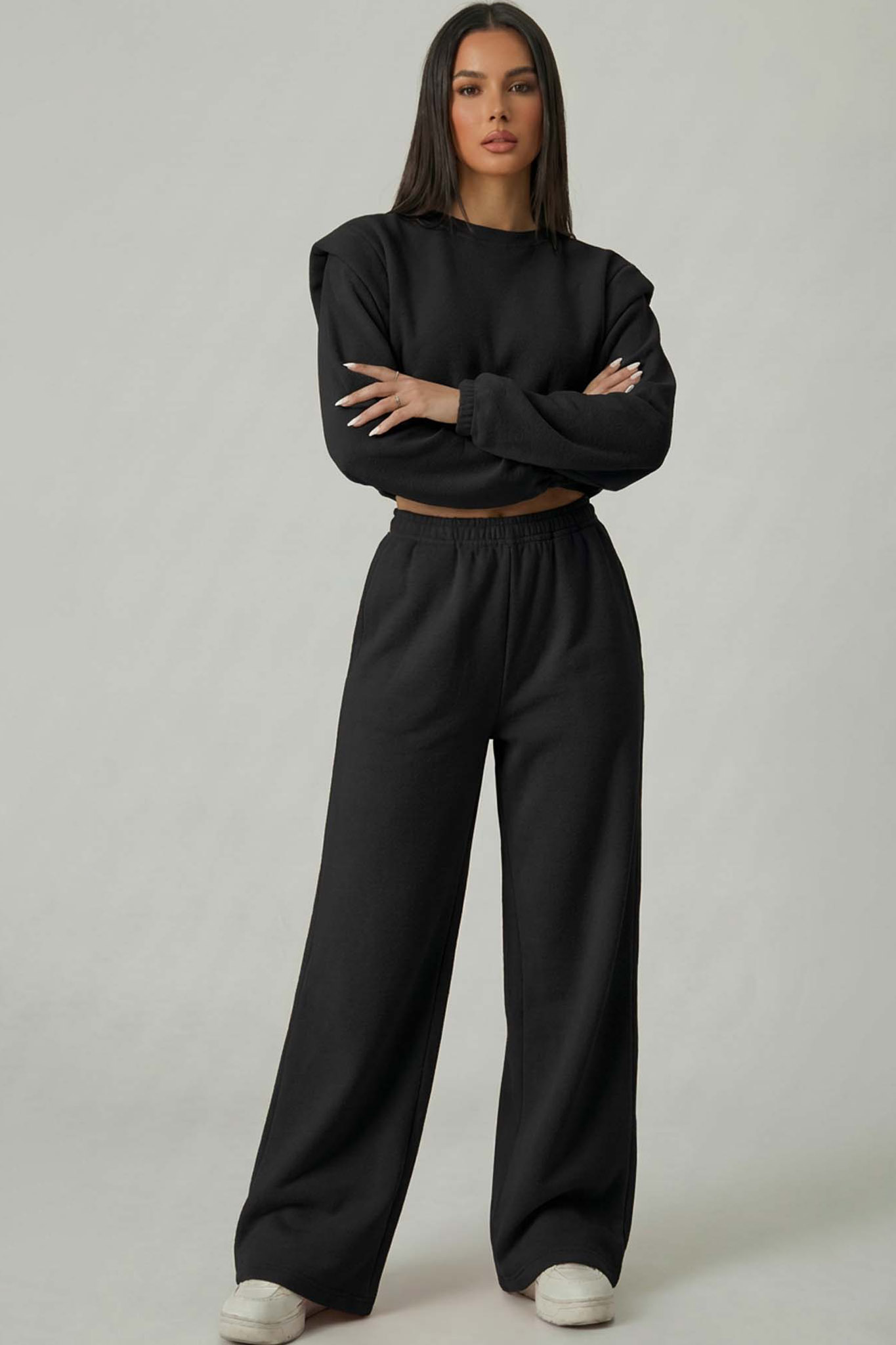 Σετ που αποτελείται από μοντέρνο cropped φούτερ και άνετο παντελόνι σε ίσια γραμμή. Ιδανικό για casual εμφανίσεις με άνεση και στυλ όλη μέρα.