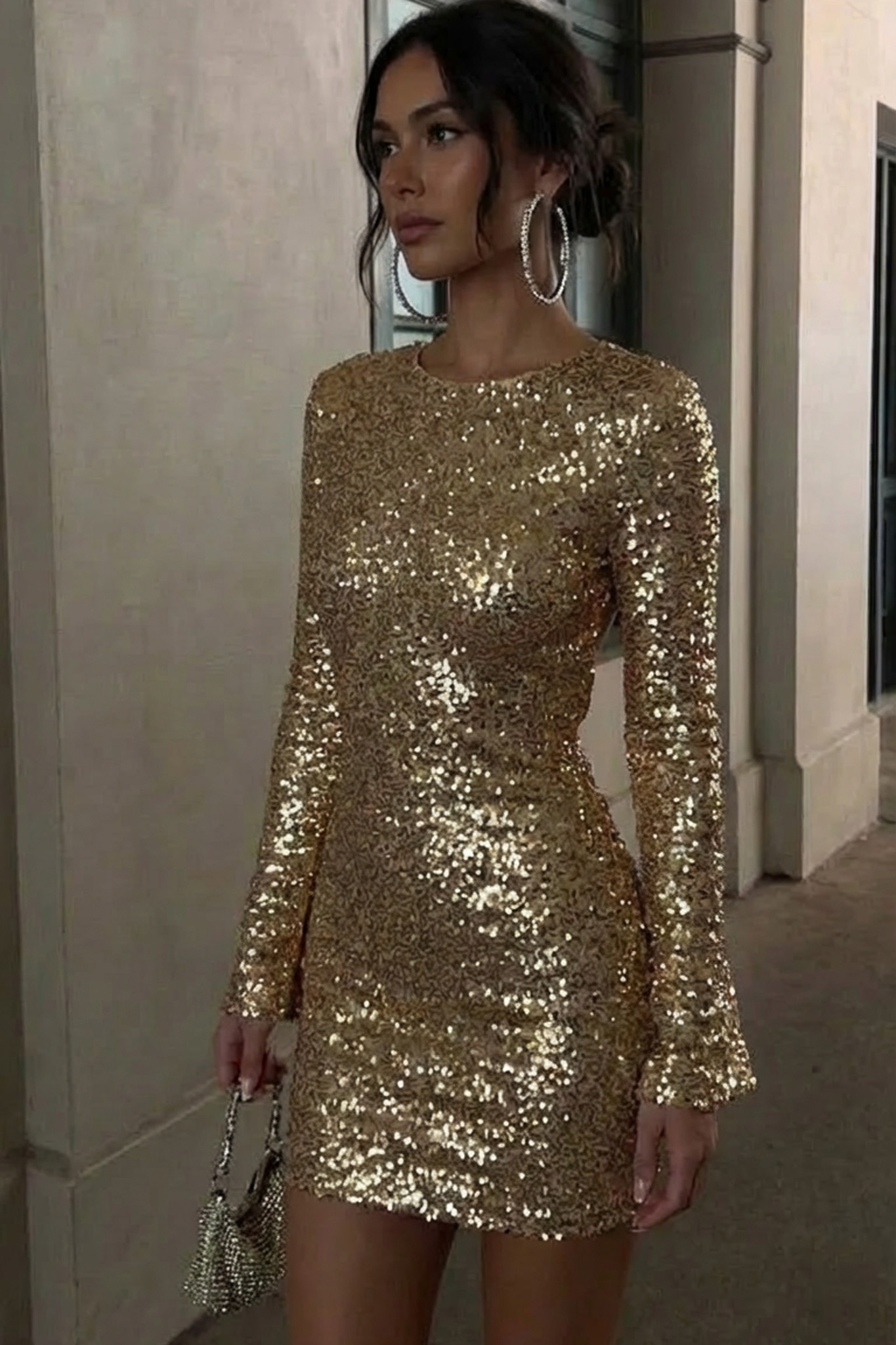 Φόρεμα σε μίνι γραμμή με παγιέτα. Είναι εφαρμοστό. Προσφέρει θηλυκό αποτέλεσμα. Ιδανικό για glam εμφανίσεις και επίσημες περιστάσεις. Μετρήσεις: μηκος 88cm, στήθος 45cm, μανίκι 66cm.