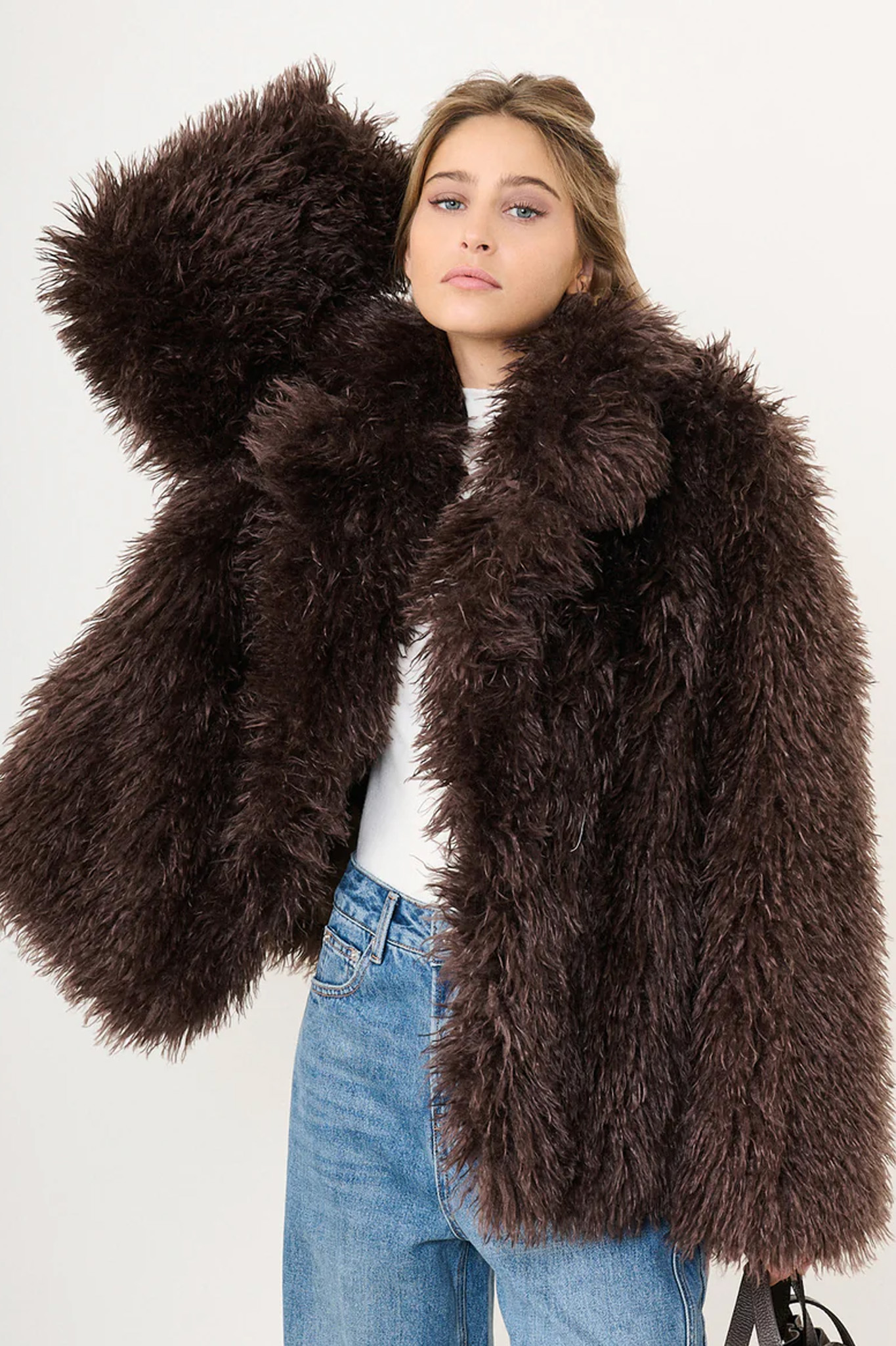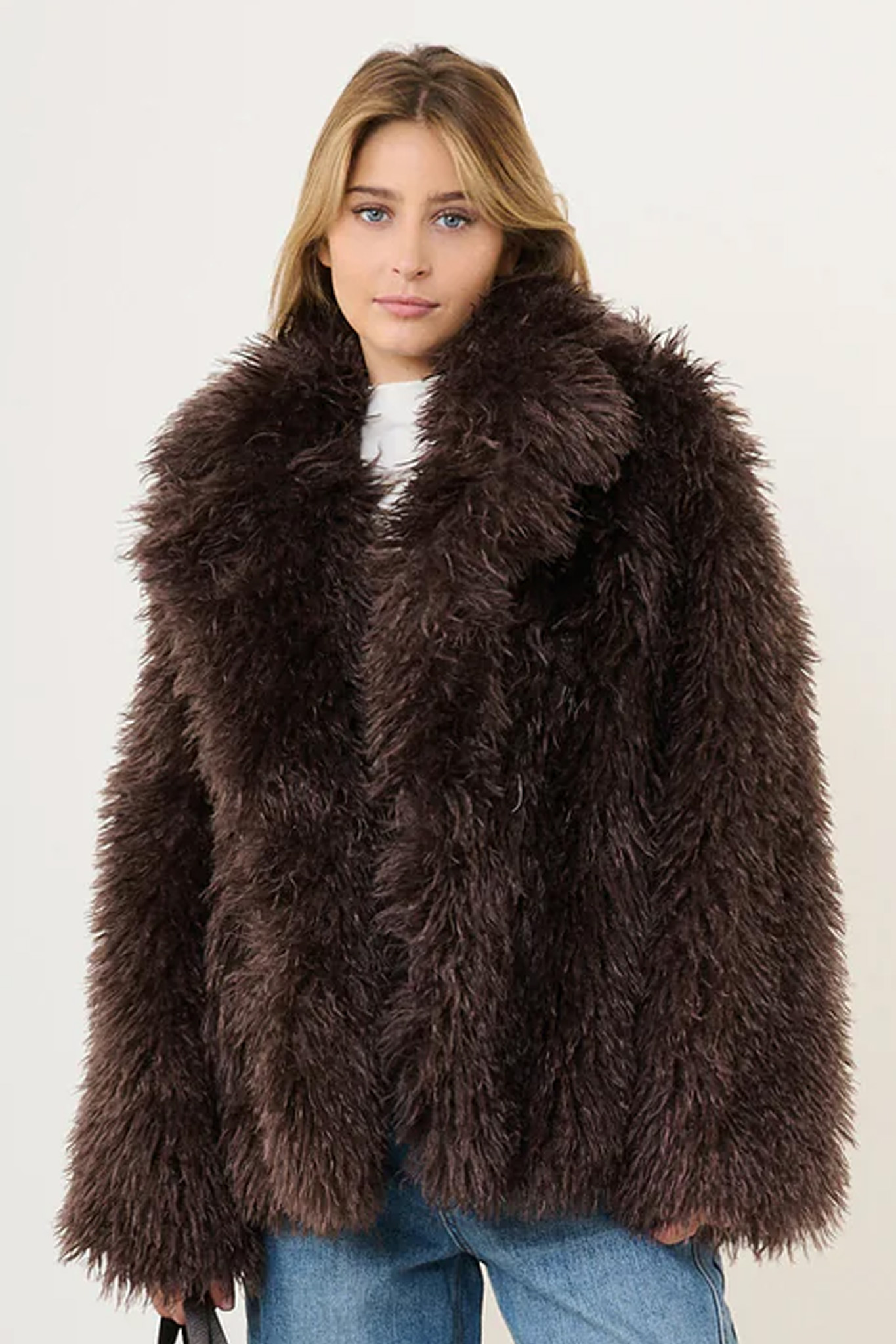 Γούνα πυκνή γούνα με γιακά και κοντή γραμμή. ’νετη εφαρμογή. Προσφέρει προστασία από το κρύο και statement αποτέλεσμα. Ιδανικό για χειμερινές εμφανίσεις με στιλ.