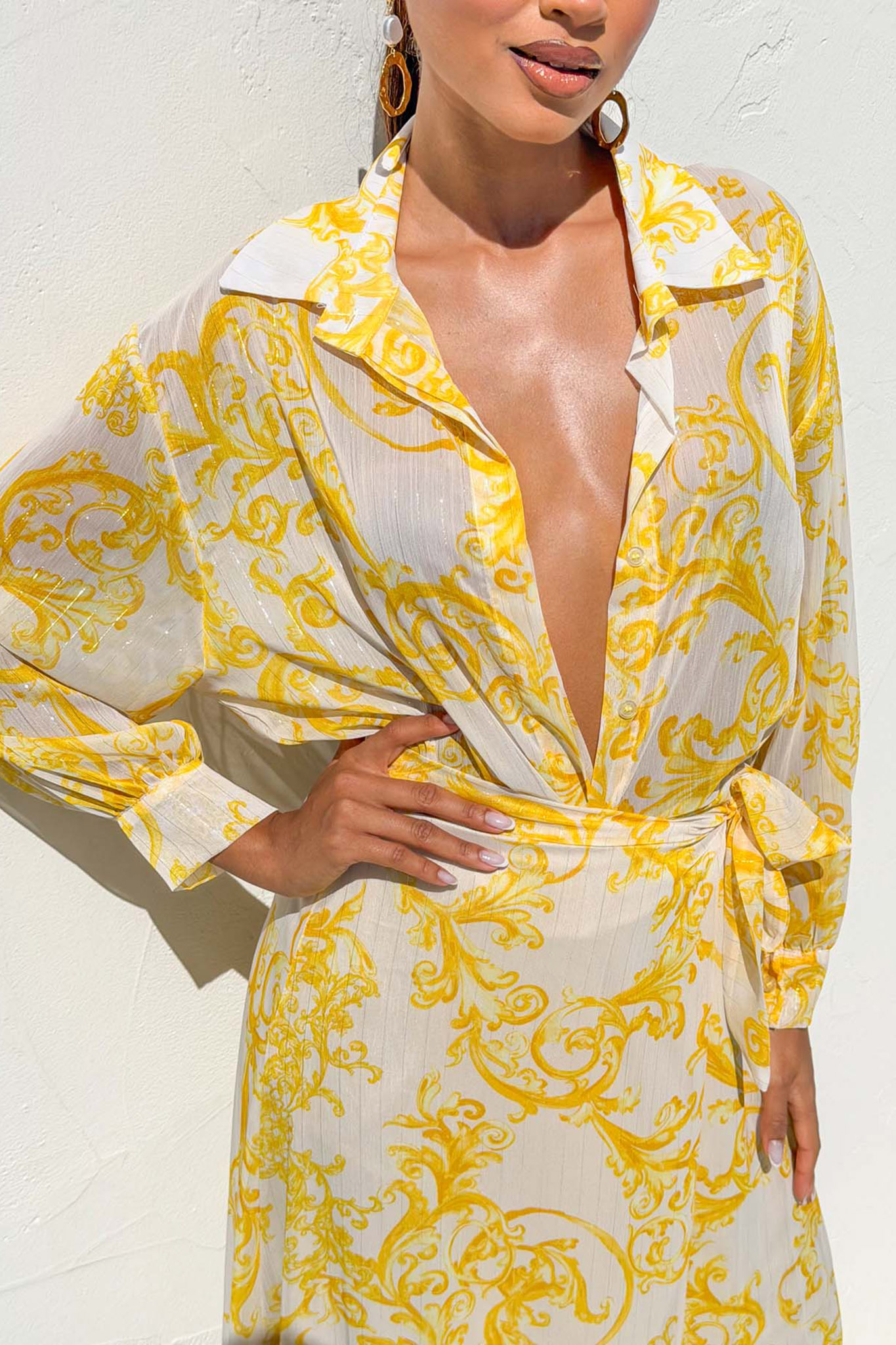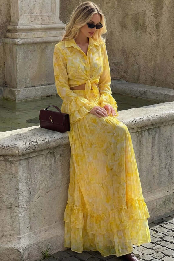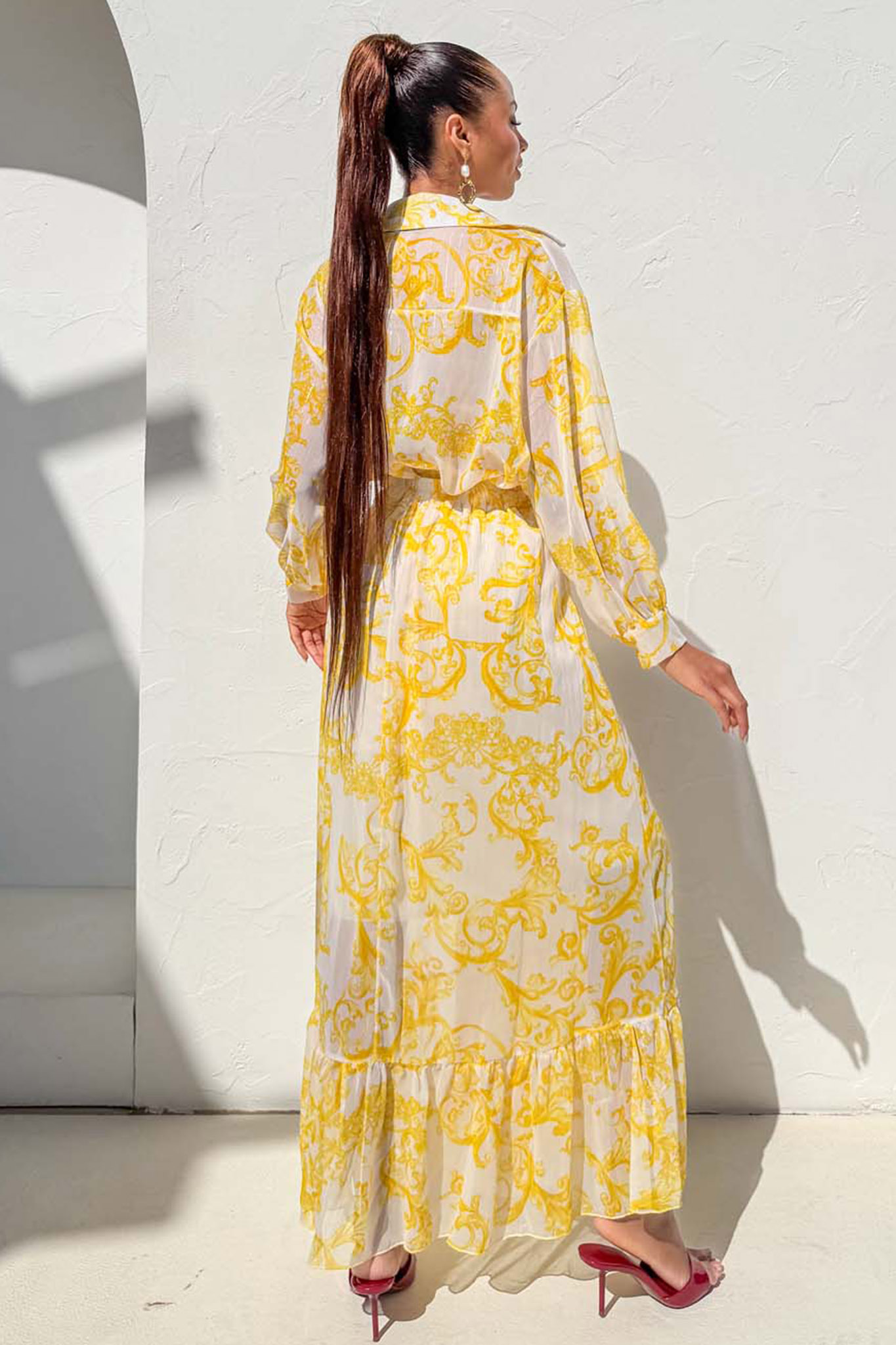 Daffodilσετ πουκάμισο-φούστα με λαχούρια κίτρινο