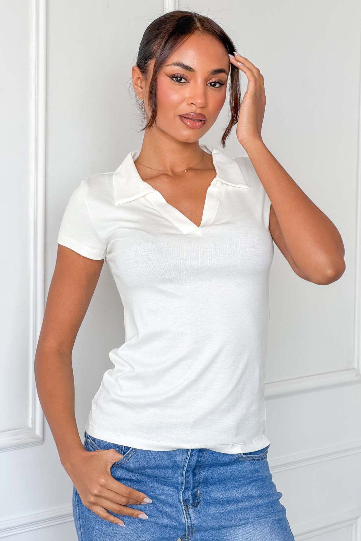 Danyελαστική κοντομάνική μπλούζα με γιακά λευκό